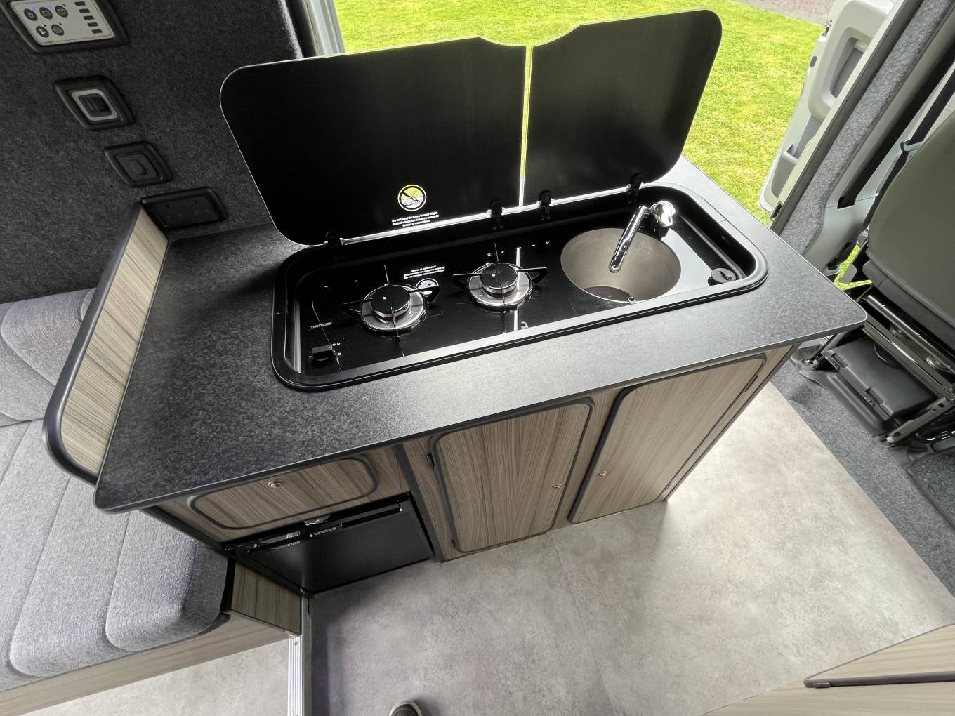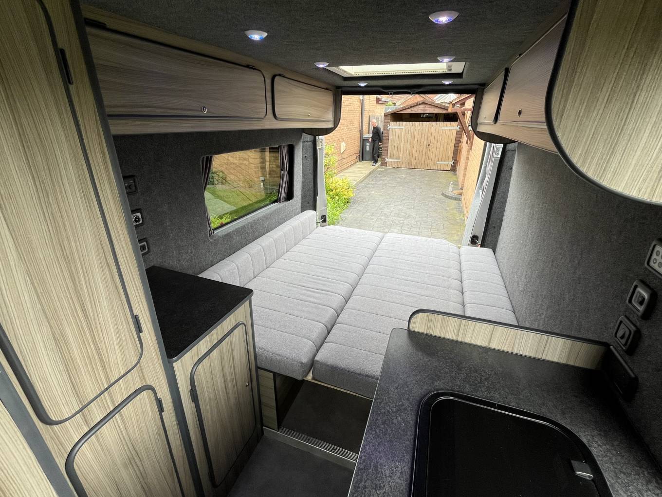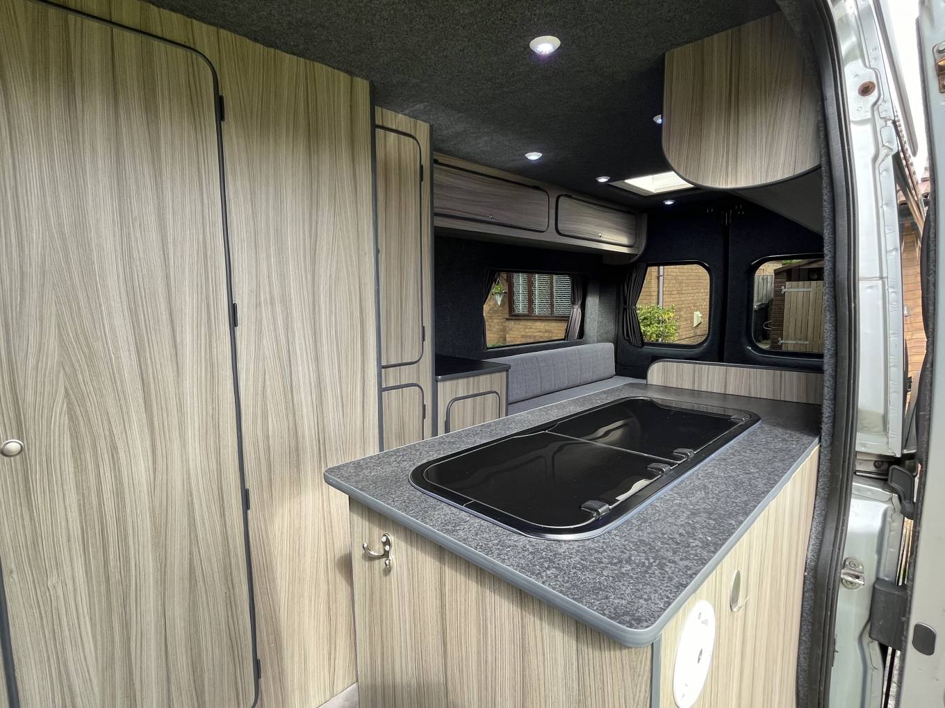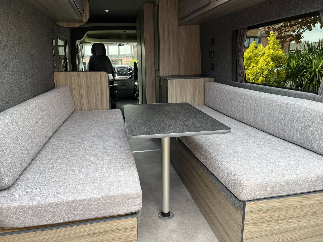 Citroen Relay Campervan, 2 Berth with End Lounge. This is a nice conversion with many useful features, it comes with a recent service, long MOT and is in lovely condition throughout. At the rear is the lounge area with 2 bench seats which can be used as 2 single beds or 1 large double. In the centre is the kitchen and the bathroom, with cassette toilet and at the front the seats swivel and there are Remis blinds on the windows. The features include Truma Boiler, Blown Air Heating, On Board Water Tank and Pump, Canopy Awning, Manual Step and Solar Panel. It also comes with Gas Bottle, Mains Lead and is available for viewing by appointment in Preston. Call for more photos, videos and information.