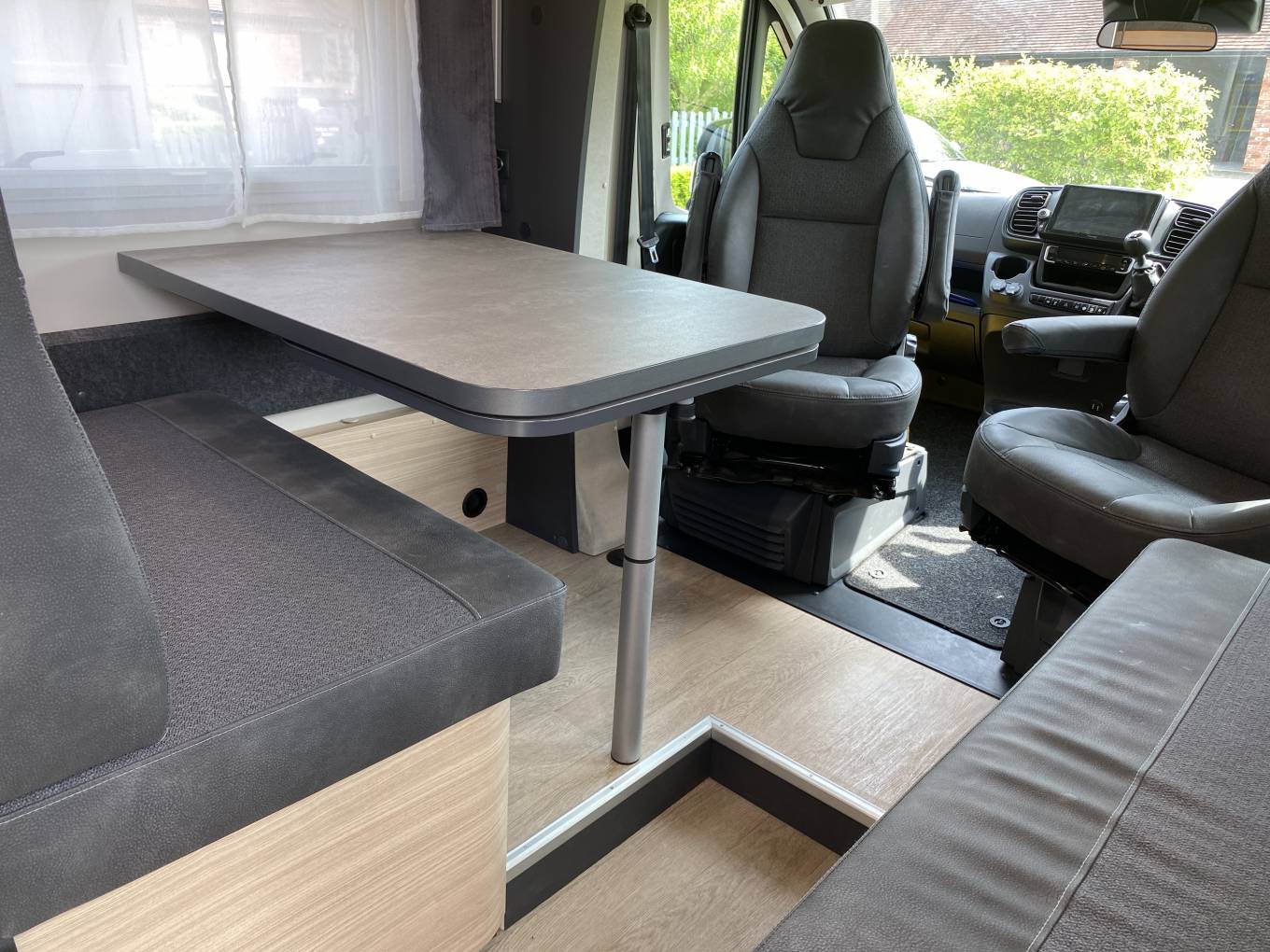 there are sculpted upper lockers. Opposite to the dinette area, with its extendable