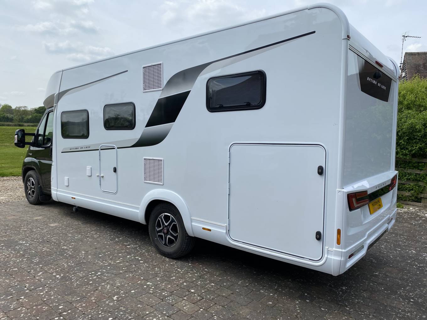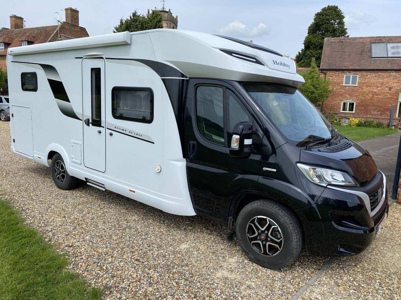 LOCATED IN WARWICKSHIRE, is this highly impressive, Scandinavian designed, German built, range topping HOBBY OPTIMA DE LUXE 75HGE motorhome, first registered in March 2023, it is a 4 berth with 4 belts, low profile motorhome, with the much sort after rear fixed single beds, over a large rear garage and with the benefit of an electric drop down double bed over the living area layout. Based on the popular Fiat Ducato chassis with a Maxi Multijet3 2.2 140bhp Euro 6 compliant diesel engine, along with the six speed manual gearbox. It has only 6,500 miles on the clock. First MOT not due until 2026. One owner from new, it had a full habitation check completed and was all clear in May 2024.