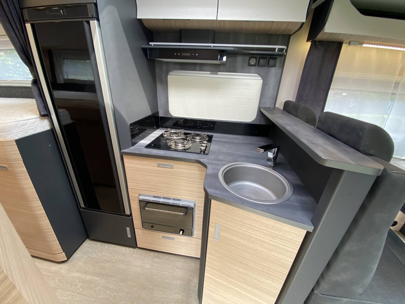 Dometic tower fridge with freezer box and a Dometic low level oven. Good worktop