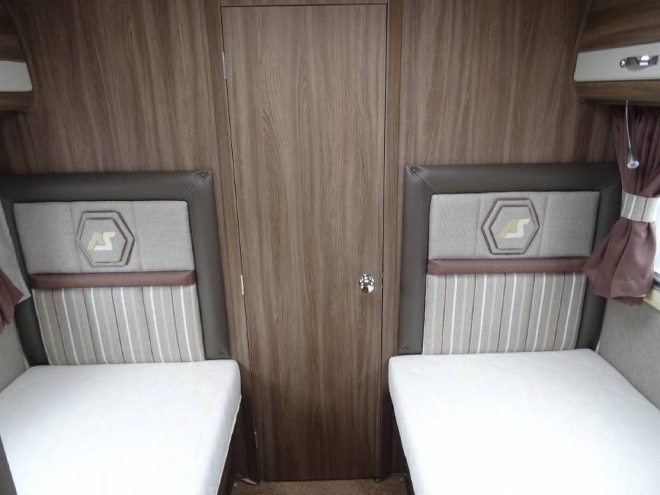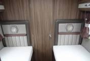 bedroom with fixed single beds and plenty of storage throughout.