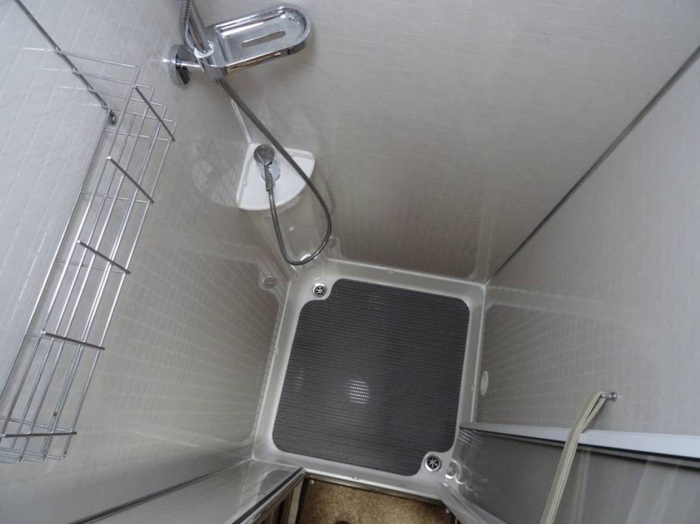 sink, vanity unit and mirror, along with a full-size shower cubicle.