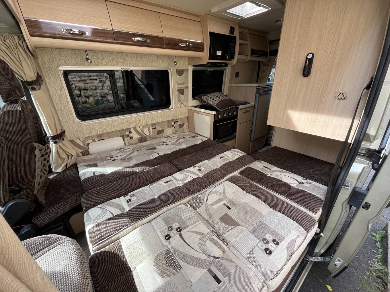 Vehicle located in Bolton. Motorhome depot Bolton are pleased to offer for sale this Autosleeper Symbol, bought from main dealer in Sept 2021. Constructed with Autosleeper quality. It’s compact yet spacious design consists of 3 burner hob, traditional oven, sink with hot and cold running water, and microwave (for use on hookup only). 3 shelf fridge with mini freezer which runs on gas or electric. All appliances run on highly efficient LPG gas for off grid living and/or electric when on hookup. Bathroom is a compact wetroom style with easy to manage cassette toilet, drop down sink and inclusive shower unit. Reversing camera, CD/radio, solar panel for trickle down charging, thermal external blinds for blackout or sunshade, external the motorhome benefits from a Thule wind out awning, external BBQ point New water pump fitted (Sept 2023), new battery, new roof light fitted April 2024. Habitation check completed in September 2023 and full MOT October 2023.