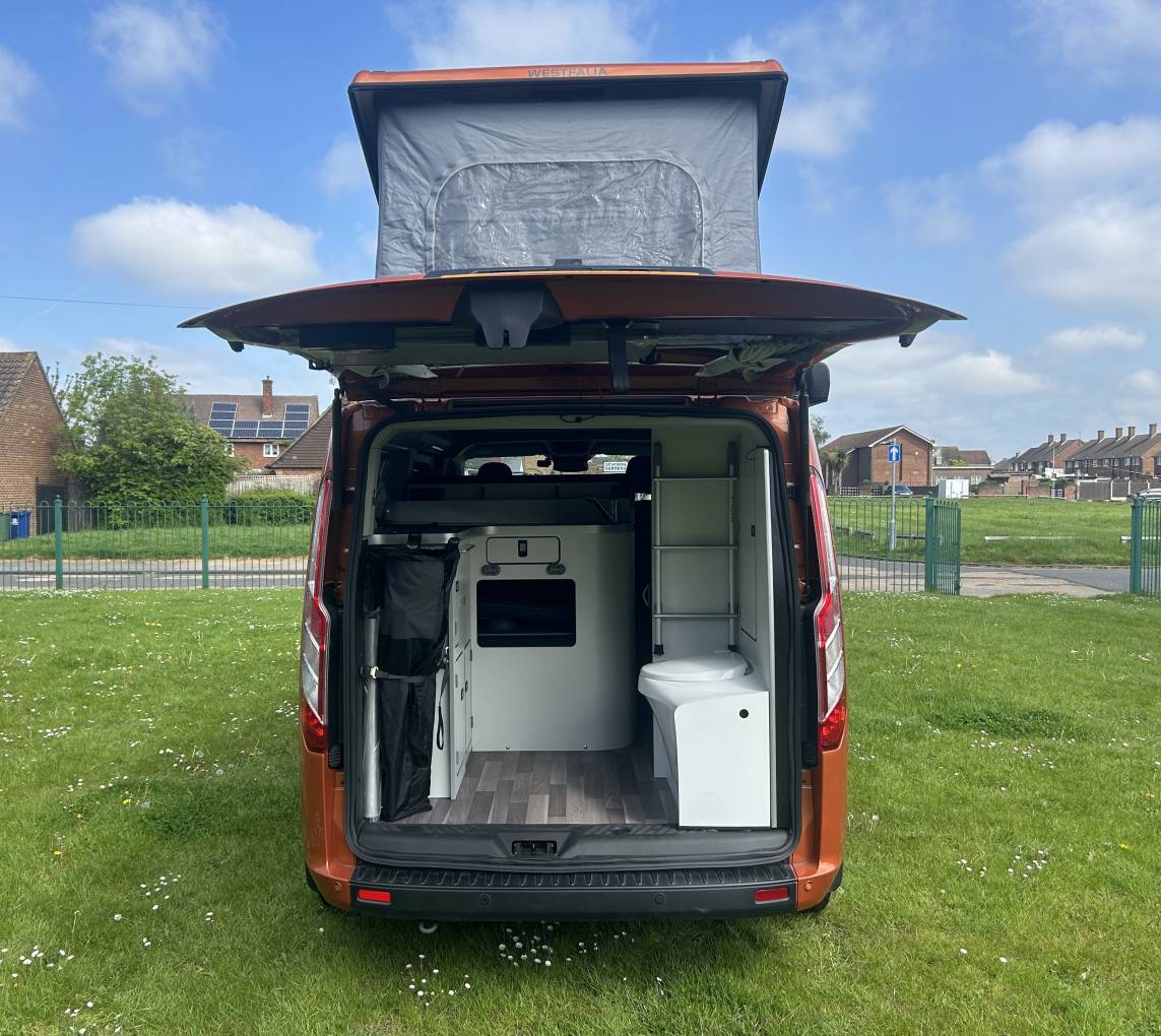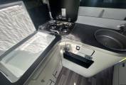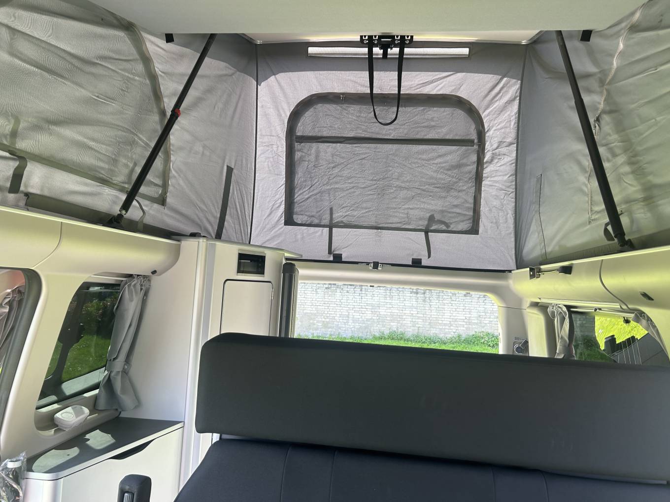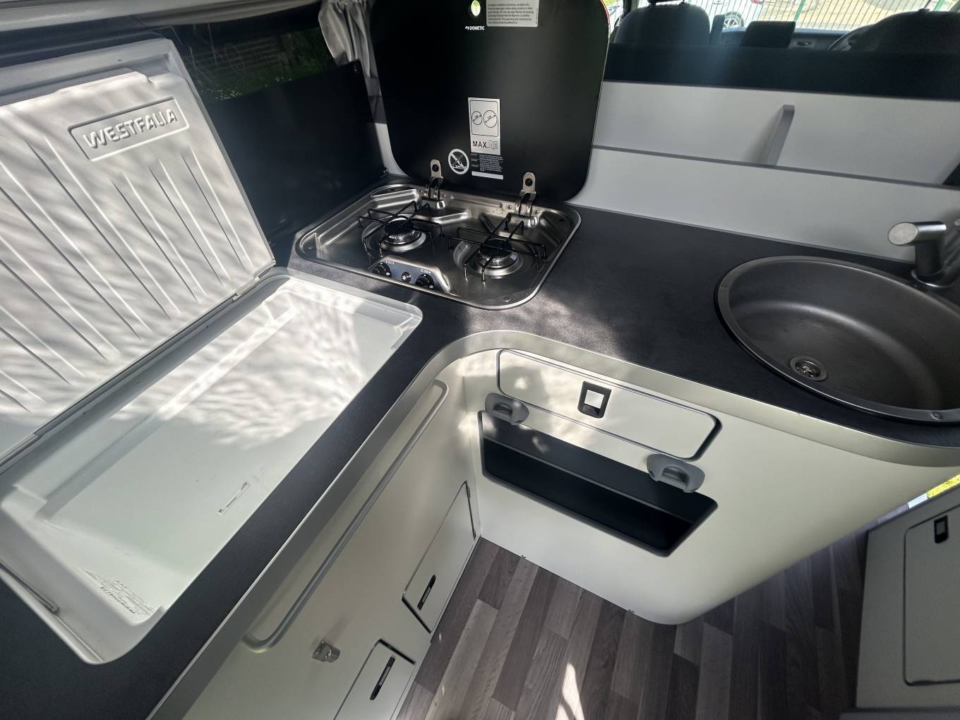 The Nugget Plus has a very clever layout and makes the most of the size available. At the front you have a perfect seating area making use of the two front seats and a double rear seat. There is also a cleverly stored table that can be set up in the middle. Moving back the camper has great kitchen area - with plenty of head room with the Pop-top roof up. It has a large cool box style fridge, hob with 2 burners and sink with hot and cold water. The camper is also ideal to sleep in. There is a good sized double that is made up from the rear sofa and a further double in the Pop-top. This camper also comes with its own Thetford Flush cassette toilet at the rear of the camper which comes with a privacy screen and pull down basin. The camper also comes with heating and hot water - all operated through the simple to use 12 volt control panel.