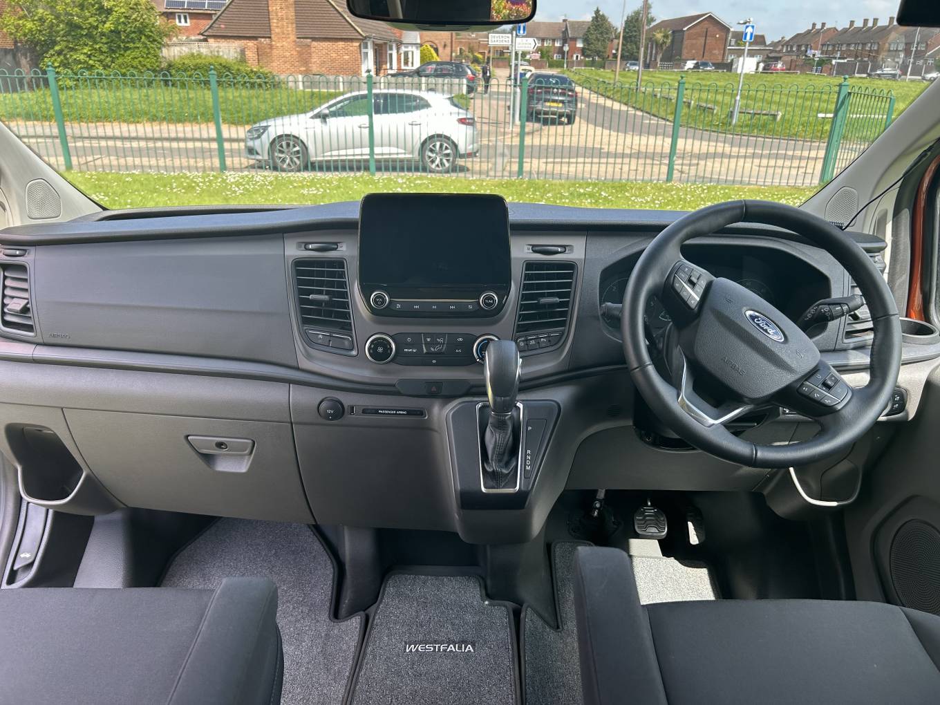 This particular camper is built on the Ford Transit and has superb 2 litre engine, with 6 speed auto gearbox and 185 bhp making it such a pleasure to drive. It has everything you need in the cab including air conditioning, cruise control, reversing camera and Multi-Media system. The camper is a Euro 6 engine and so is ULEZ compliant - the fact it is only 5.4 meters means it can comfortably navigate the small UK roads, city centres and parking is no problem either.