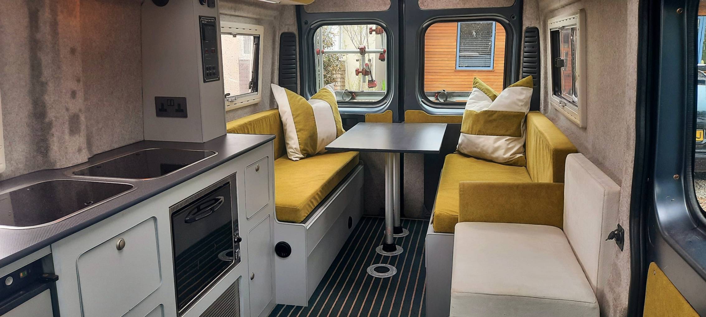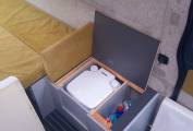 Under seat storage areas for storage of effects and bedding and housing gas bottle and Webasto heater.