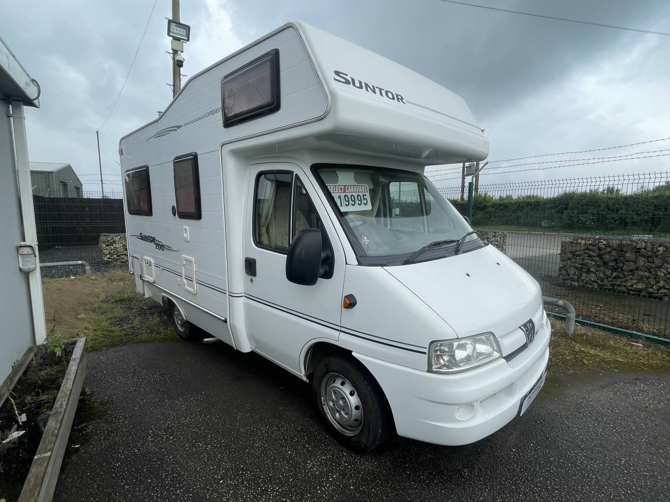 Welcome to the sale of this lovely 2005 Compass Suntor 200 4 berth 2 travel seats motorhome based on a Peugeot chassis and has a 1997cc Diesel engine with a manual gearbox and at 2900kg, it can be driven on any license.The layout of this motorhome is rear U shaped lounge with over cab bed. Starting with the rear of this motorhome, you have the highly desirable U shaped lounge along with the large windows and roof lights that floods this room with natural light makes it a fabulous spot to relax and unwind in. The sofas converts to make an extremely large king size bed. As we move through the motorhome we have the kitchen where there is a large oven with grill and 4 way gas hob, stainless steel sink with storage overhead and a Dometic 3 way fridge with freezer compartment.Opposite the kitchen is the large washroom which includes a shower, a Thetford toilet cassette, washbasin with mixer tap and a full size wardrobe with drawers and cupboards. Above the cab is a huge double bed with plenty of room for 2 tall adults.