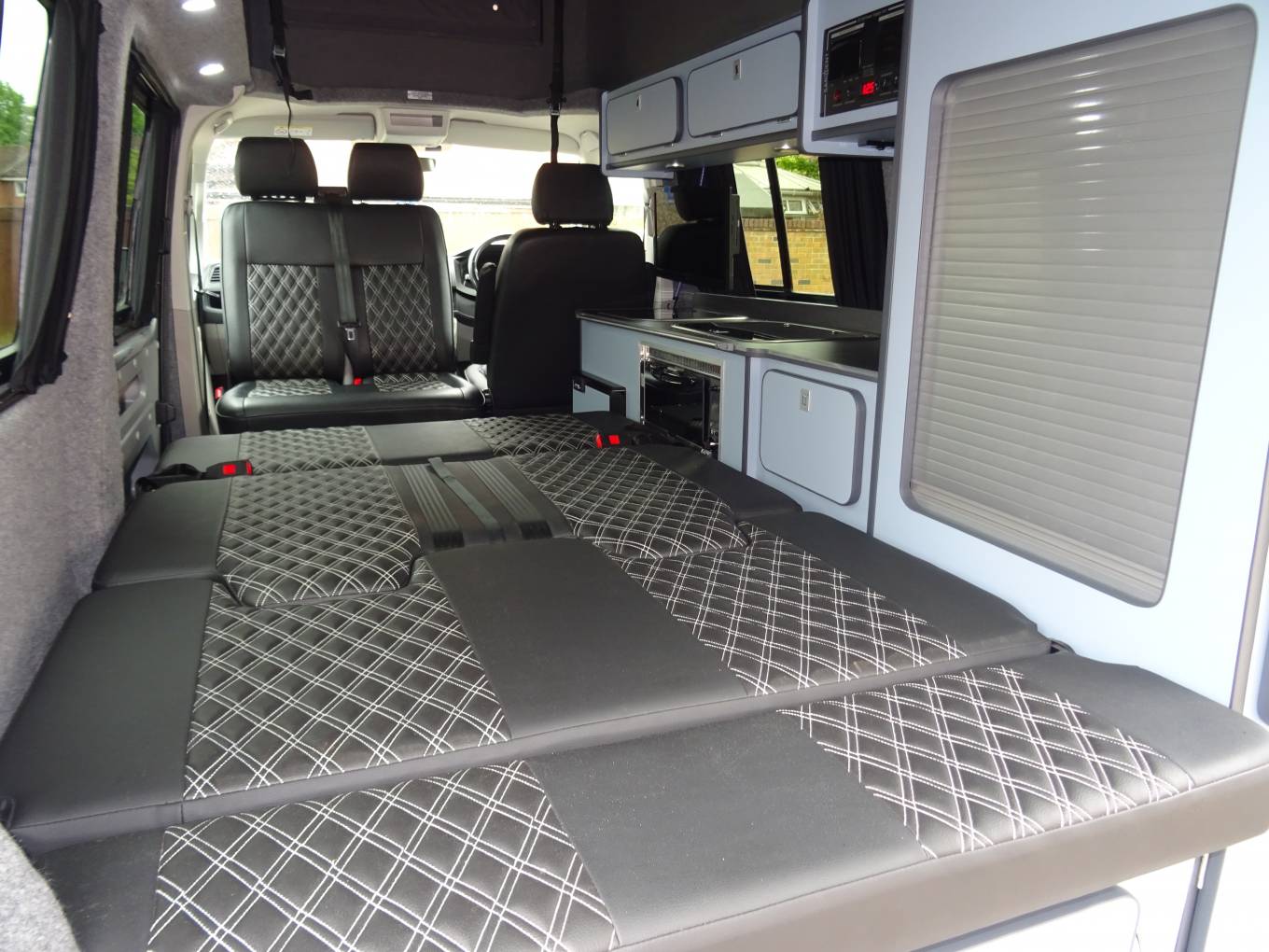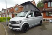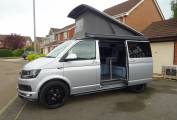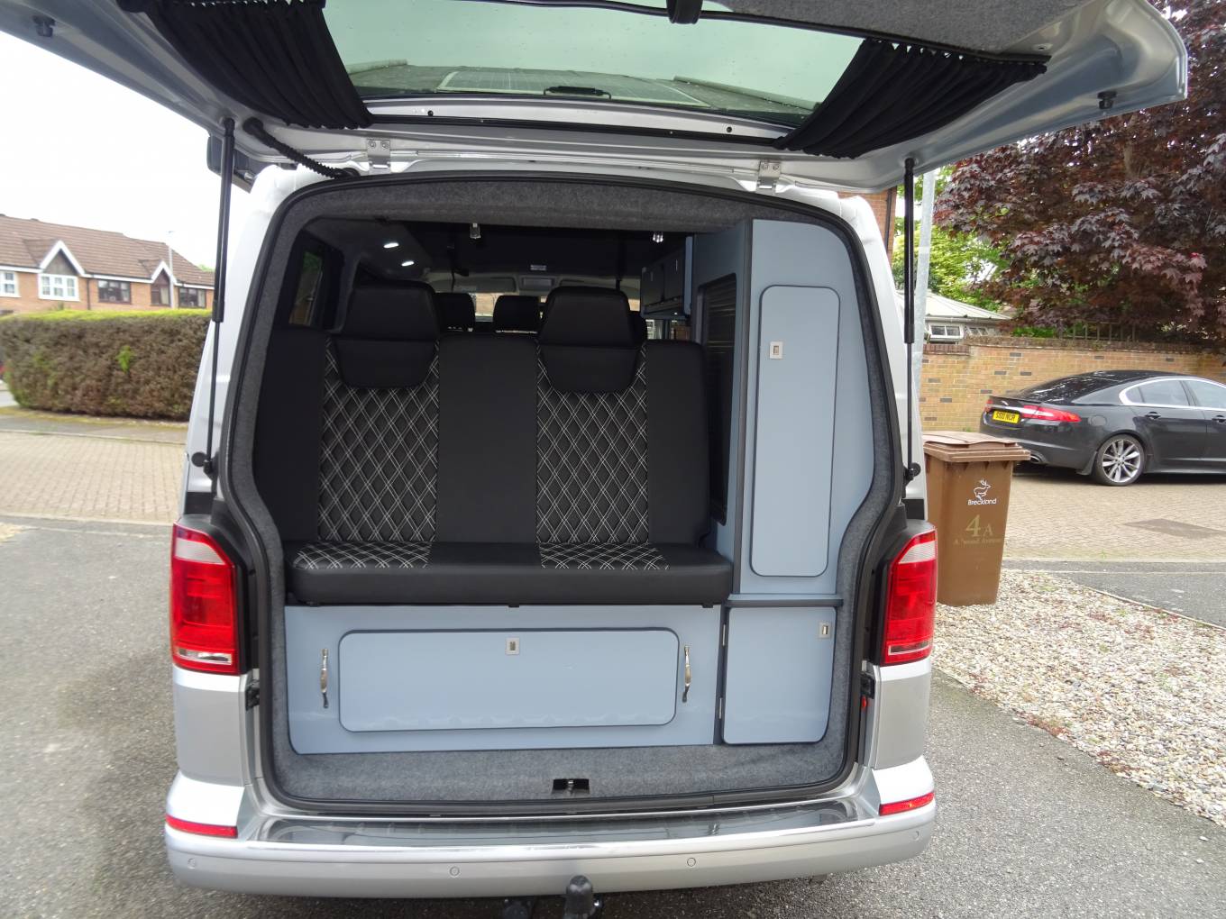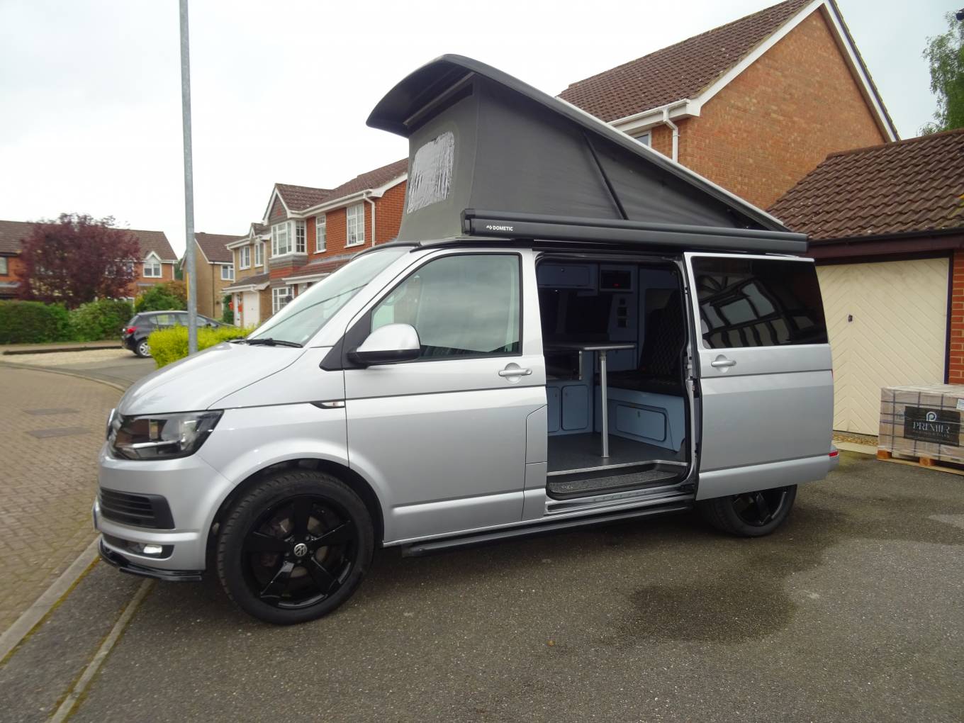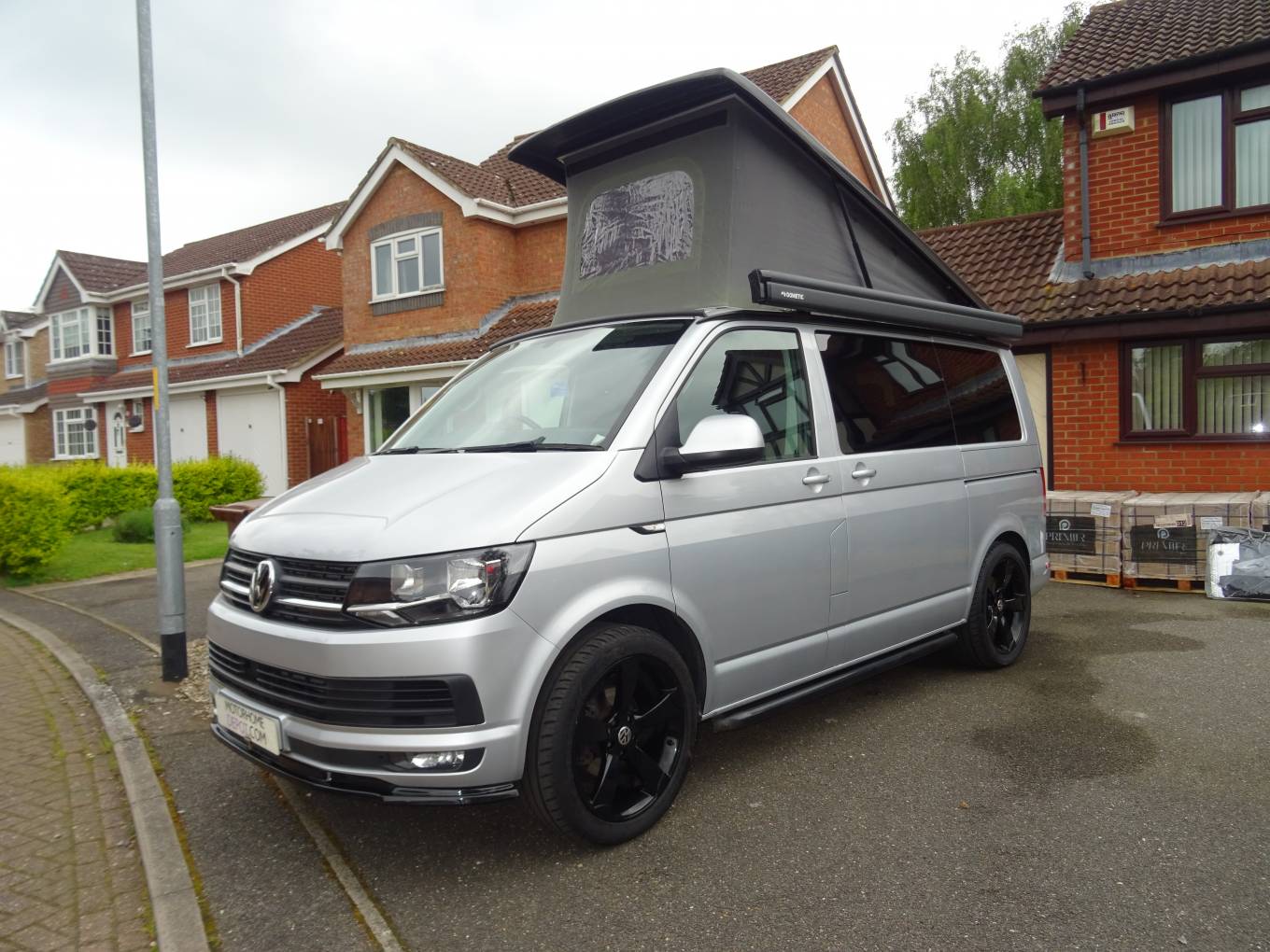 Other great features diesel heating, cold water system with fitted fresh water tank, fridge freezer, two gas burner hob with glass lid, outside BBQ point, removable hook on table, mains 230v, solar panel. cab aircon, radio, leisure battery, black out curtains and tinted windows, Led down lighting, Black alloy wheels with 275/40/R20 tyres gives it a great look, rear parking sensors, tow bar, new Porta Potti, cambelt replaced March 2022 and the camper van has a good service history. This camper is in stunning condition and has been looked after incredibly well.The van has a good service history