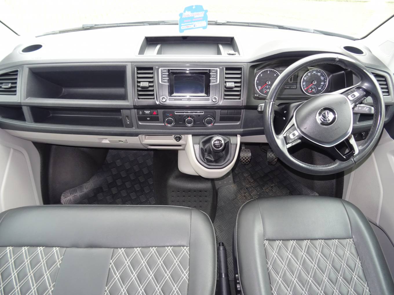 This stunning T6 SWB 4 Berth Volkswagen manual gear box 2018 T28 highline Pop Top that has a very high quality finish inside with excellent specification including diesel heating, fitted fresh water tank, solar panel with only 33202 miles MOT 12/06/2025. On entering the side door you have a kitchen area with sink, 2 gas rings, fridge freezer, pumped water, with worktop and lots of storage space.