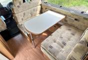 The lounge dinette is a lovely spot to relax in. Here you have a forward facing two seater sofa with two seatbelts as well as a rear facing sofa. At bedtime the sofas convert into a double bed. The dining table fixes onto a side rail and this can be removed if you want more space. The final two sleeping berths are in the large overcab bed which measures 82 x 57 inches so even the tallest of adults can stretch out.