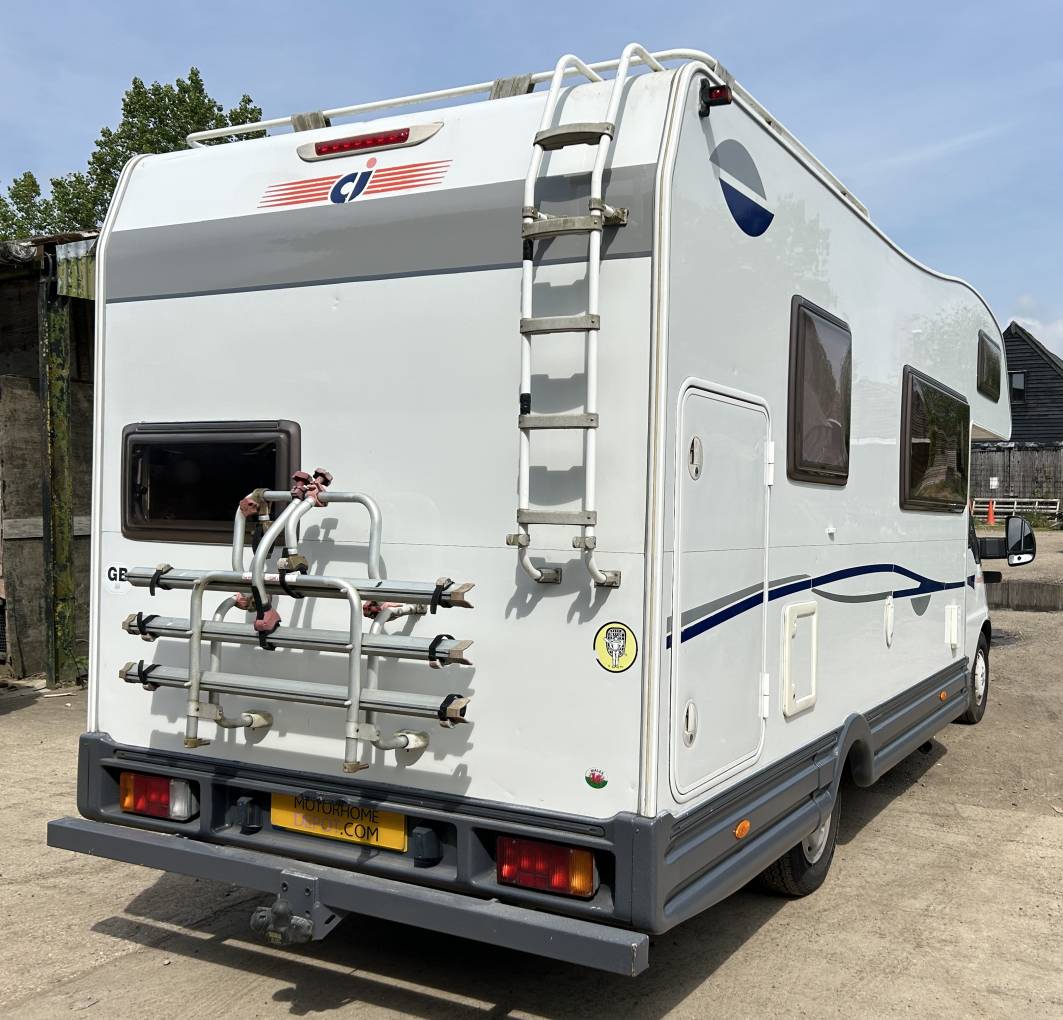 This delightful motorhome has a tow bar so you have the option of towing a small car or even having a scooter rack fitted if you so wish. For the energetic amongst you there is a bike rack for 3 cycles. You also have a roof ladder to help make cleaning the roof a whole lot easier.