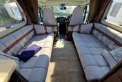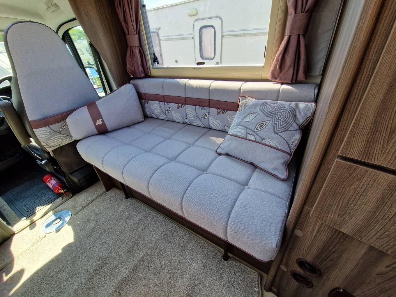 This Nuevo comes with a classically British motorhome layout, featuring long side-facing settees up front and a galley across the tail, while the washroom sits in the rear offside corner. This allows you to sleep lengthways (in a double or singles) without using the cab seats. The twin bed lengths quoted by Auto-Sleepers are 1.93m (nearside) and 1.86m (offside), while the alternative double is a whopping 2.10m by 1.93m, so you can choose to sleep across or along the motorhome.