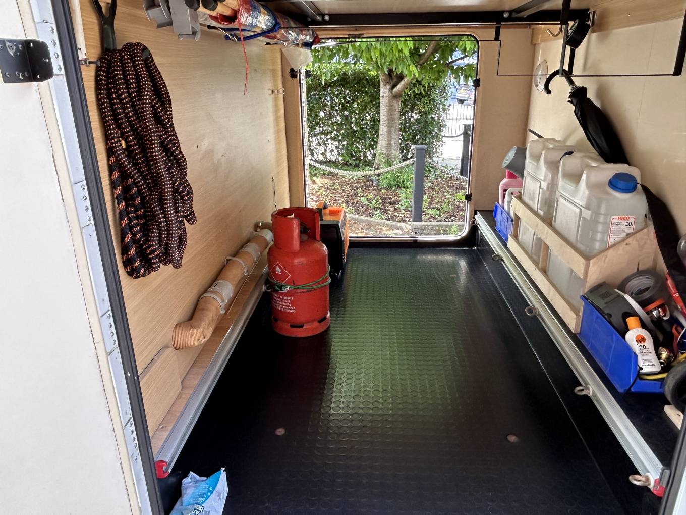 Externally the motorhome benefits from an enormous garage so you have no shortage of room to pack all your favourite items from home if you want to go long term touring. A tow bar has been fitted so you can tow a small car if you wish. The motorhome also comes with a huge wind out awning, a roof ladder, a reversing camera and 2 high quality leisure batteries. It also has 2 standard gas bottles but there is the option of converting to Autogas refillable bottles if you want to.