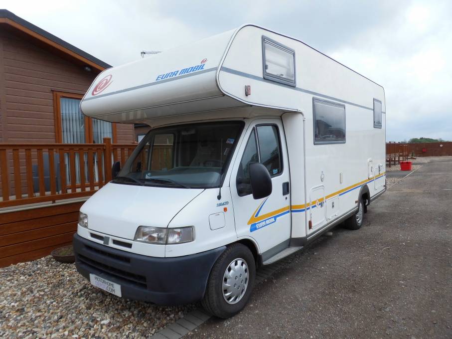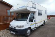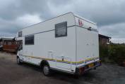 Continental tourer LHD 6 berth, seemingly ideal for the continent and U.K touring with lots of space, 6 travelling seat belts, over cab bed, dining area that converts to a double bed, a very large fixed rear traverse over garage bed. There is a bike rack and motor cycle rack included not shown in pictures. Side kitchen with a 3 burner hob, no oven as is the norm in continental motorhomes. Good size washroom with separate shower, plenty if light throughout the vehicle. Lots of storage space, with a very large rear garage, that can accommodate two motorbikes, so ideal for motor sports, weekend sports enthusiasts plenty of space to store your equipment. Sides are included for the awning, there is a cover for the motorhome, as well as some spares. Solar panel on board so ideal for off grid camping, two leisure batteries on board. Based on a Fiat chassis with 2800 cc engine, making this an easy drive. Cambelt changed in 2021. Overall a well looked after practical motorhome that is quite versatile.