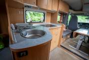 This Burstner Delfin T686 is a 4 berth motorhome built on a Renault Master chassis with a 3-litre diesel engine and boasts a remarkably spacious interior within its 6.8m length and has a manageable weight of 3500kg.
