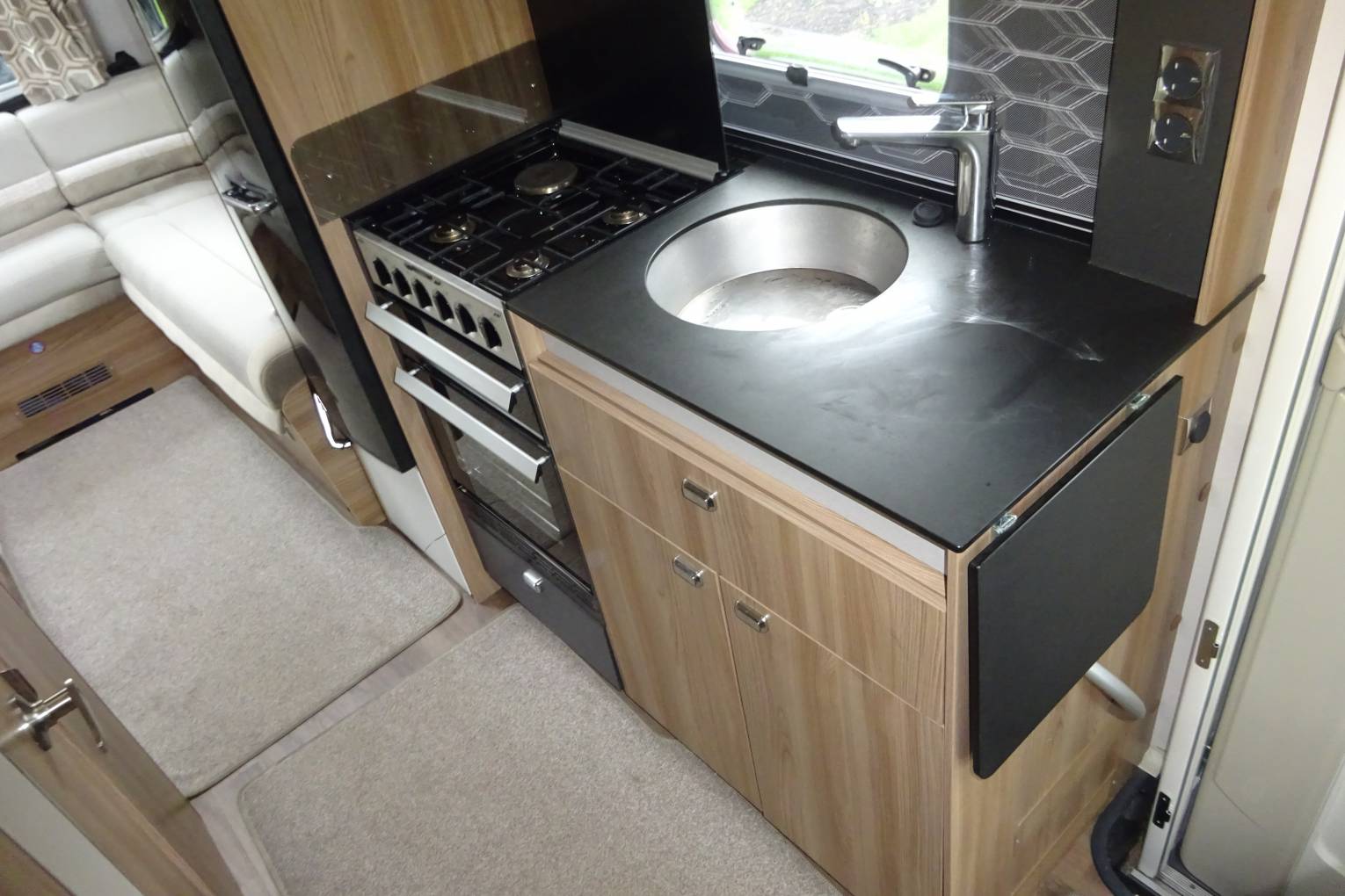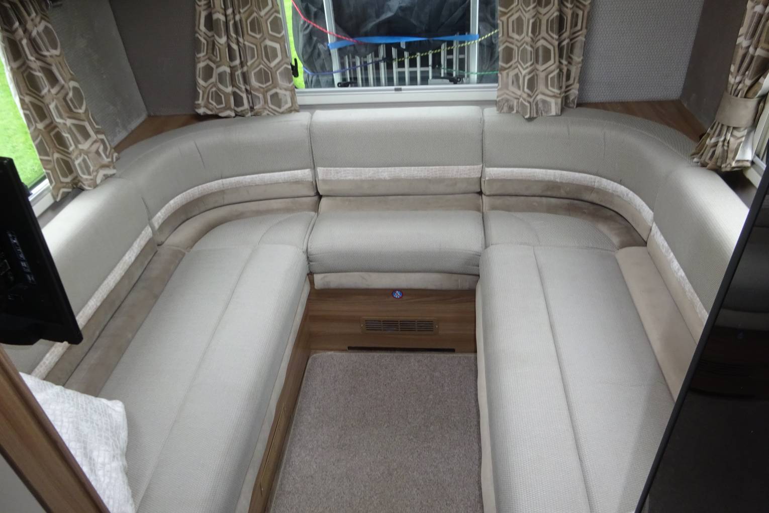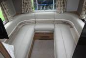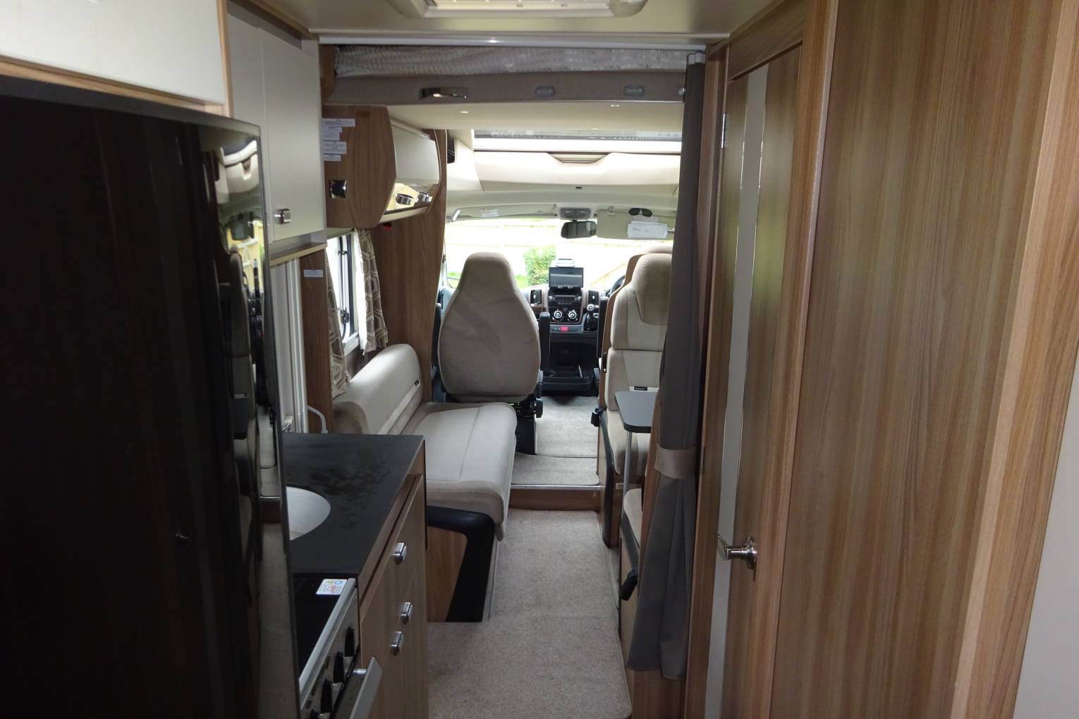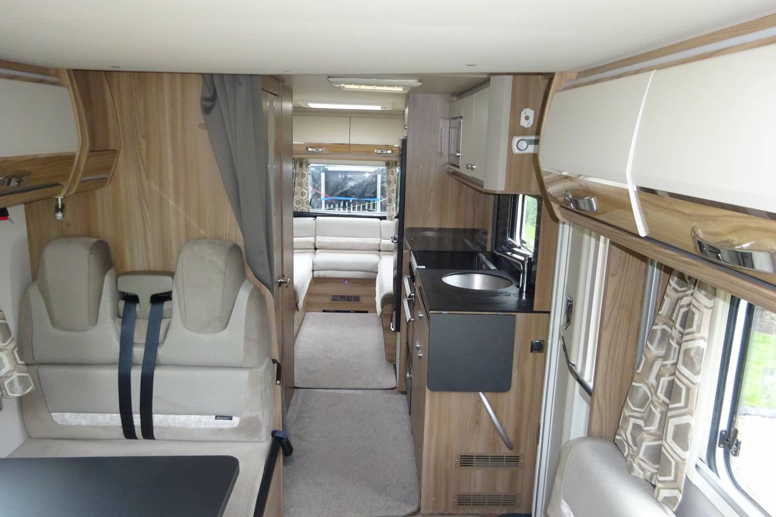 As you step inside you get a real feel for the spaciousness and luxuriousness of this motorhome. You immediately notice that the inside is as well presented as the exterior of this motorhome. At the front of the motorhome there is a seating area for 6. The seating area easily makes up in to a good size double bed. You then come to a very nice, well equipped kitchen, fitted out with an oven, grill, 3 burner gas hob complimented with a fourth electric ring, microwave, sink and a large fridge with ice box. There are plenty of storage cupboards and compartments throughout the living and kitchen areas, including a large wardrobe and garage, allowing you to bring everything you might need. Towards the back of the motorhome there is a second large U shaped seating area that breaks down in to a large double bed. Opposite the kitchen area is a good sized bathroom fitted with a toilet sink and separate shower, all in excellent condition. The third bed is a large pull down double bed situated above the front seating area. The motorhome is also fitted out with the alde wet heating system.