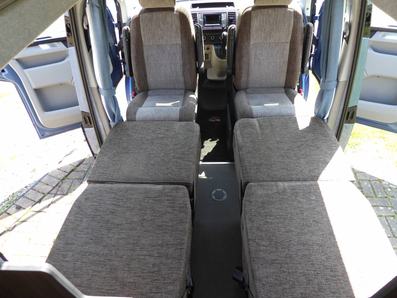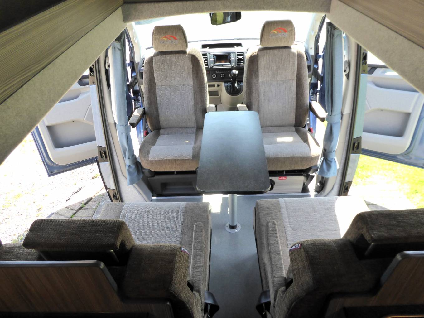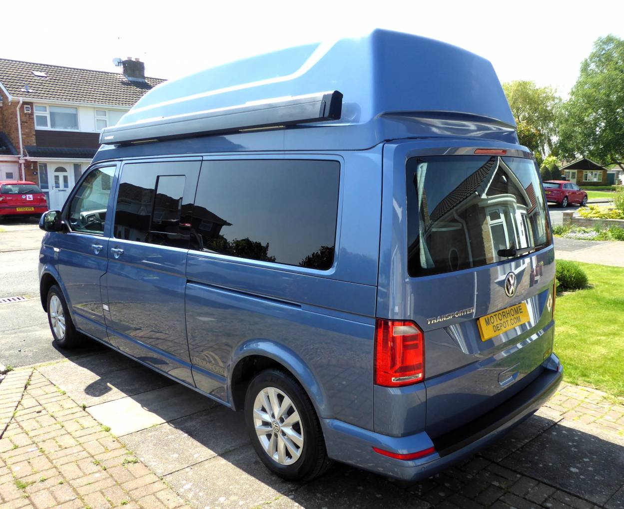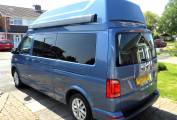 Call with any questions on 01423 609985. This Hillside Leisure Cromford,2 berth, Hi-top, VW conversion is in excellent condition, well specified and distinctive, with sliding doors on both sides and 4 seatbelts, so works well as day van and campervan. The layout comprises, a washroom at the rear, with toilet, sink and shower and external shower point, kitchen with fridge, sink, and full cooker, 2 forward facing RIB seats that combine with the captains seats to form 2 single beds, or with small adaption form a large double. This layout also allows a lovely area for entertaining of relaxing, especially with the 2 sliding doors open. All finished to the high standard of all Hillside conversions. Other features include automatic gearbox, reversing camera, cab air conditioning, solar panel so fully off grid compatable, Erbespacher diesel heating, wind out canopy. Being a Hi Top, there is just under 2m of headroom insides, and has plenty of storage, USB points and sockets. Registered in July 2020, it has travelled only 17835 miles, comes with new MOT, is 5.29 m long and provides a fantastic opportunity to buy a campervan that rarely comes to market. Part exchange and finance options are available and early viewing is recommended, near York, North Yorkshire. Call 01423 609985, Reference 240343