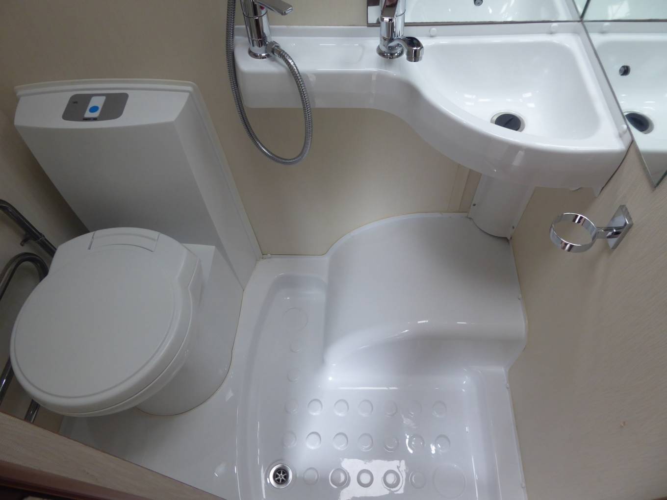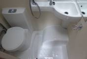 On the offside there is a central wet room with a toilet, hand basin, and shower.