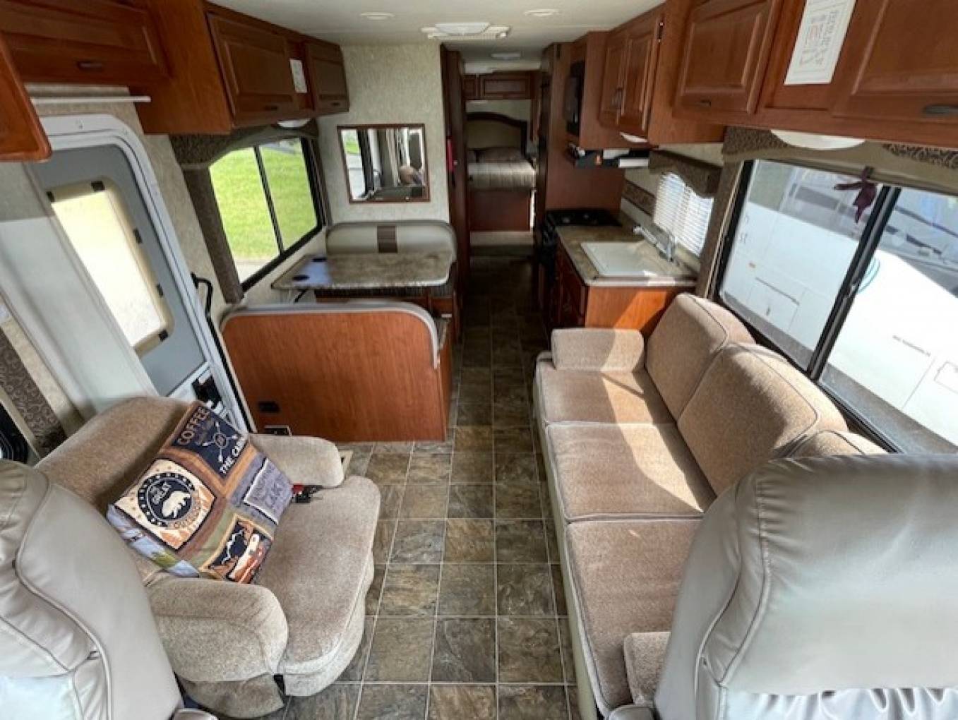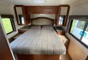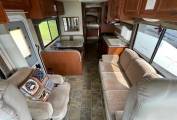 Sleeping places for 6 people. 2 travelling seat belts. You will need C1 on your licence to drive the RV. Great storage space throughout the habitation area. The captains chairs swivel round onto the lounge area. The bench sofa and the dining area will both convert into beds. At the rear you have a separate bedroom with a queen sized bed and storage lockers.