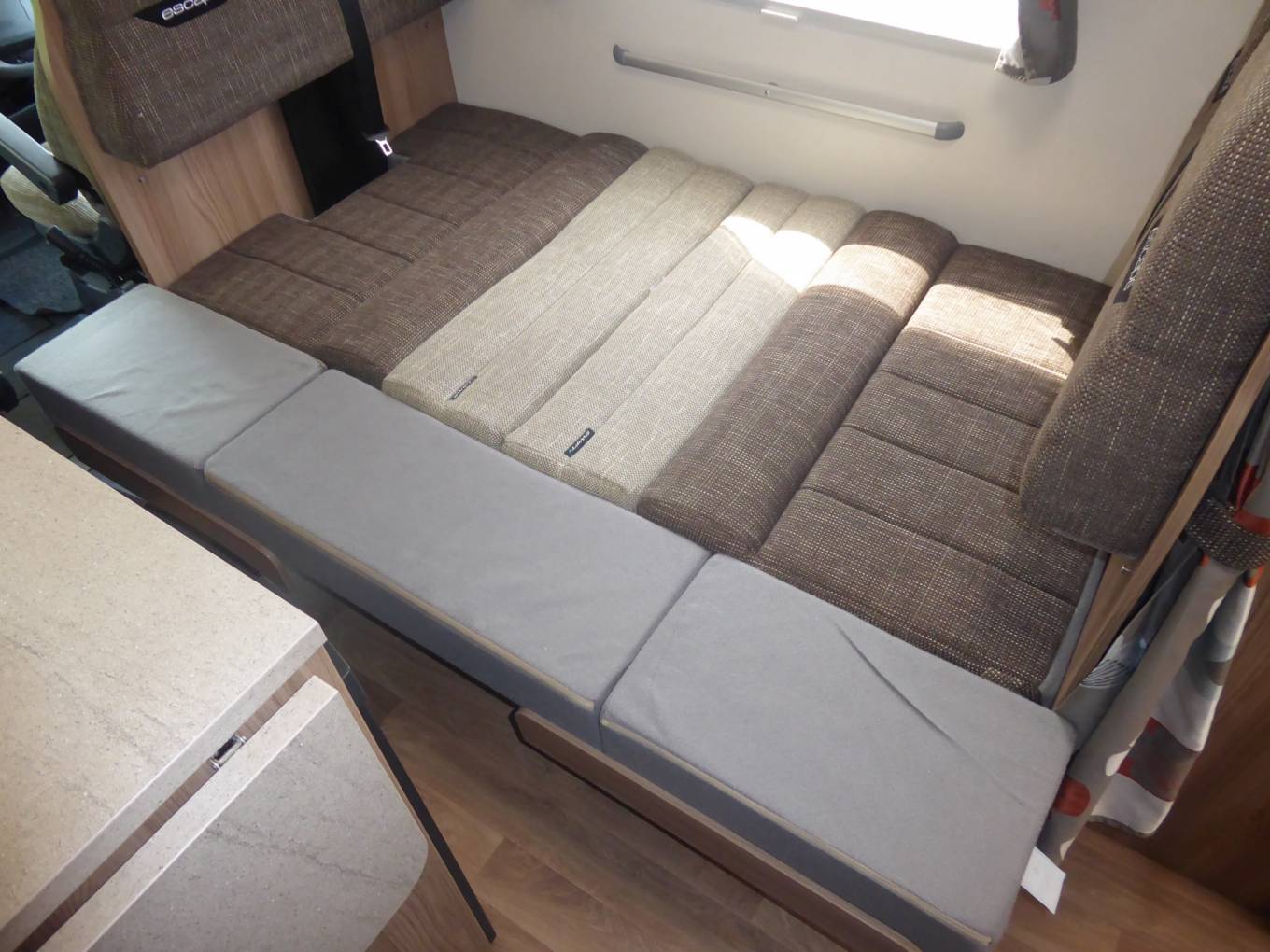 Behind the cab is an offside full dinette (with 3 additional seat belts), which can be converted into a second double berth.
