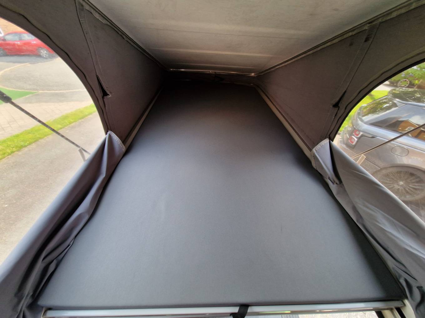 a memory foam mattress and 3 windows that unzip for additional light and ventilation,