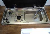 swivel seat, fold-away table, 2-burner gas hob, grill and stainless-steel sink