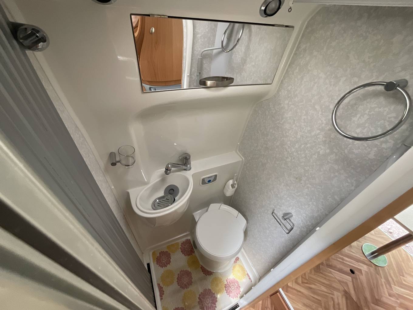 The Washroom comes complete with Toilet, Washbasin and Shower