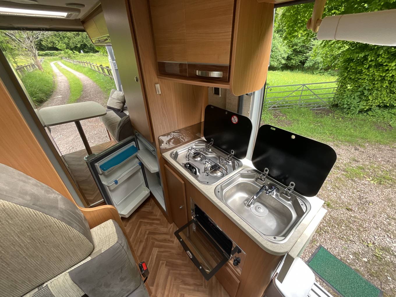The Kitchen Area has a Hob, Grill, Sink plus 3 Way Fridge Freezer
