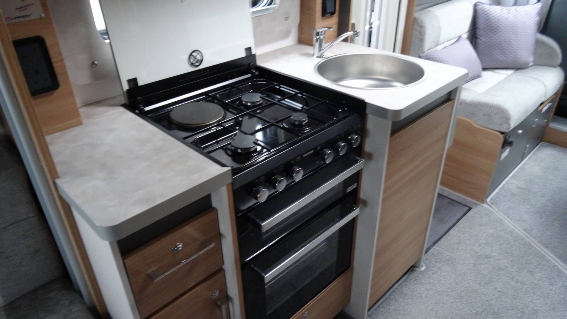 oven and grill, hob with 3 gas burners and an electric plate and a sink with an