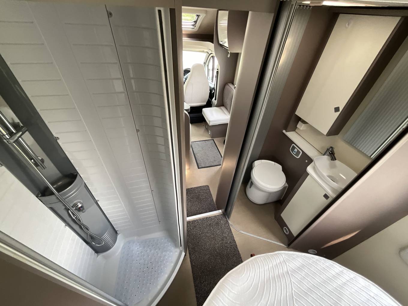At the rear of the motorhome you have luxurious bedroom with a large island bed, separate shower, a washroom with an electric flush toilet, a wash basin and mixer tap. Above the bed there are 2 additional storage lockers and with the large garage below you certainly aren't lacking for storage room. Heating and hot water operate off both gas and electric via the Truma i-net system keeping you warm and cosy all year round.