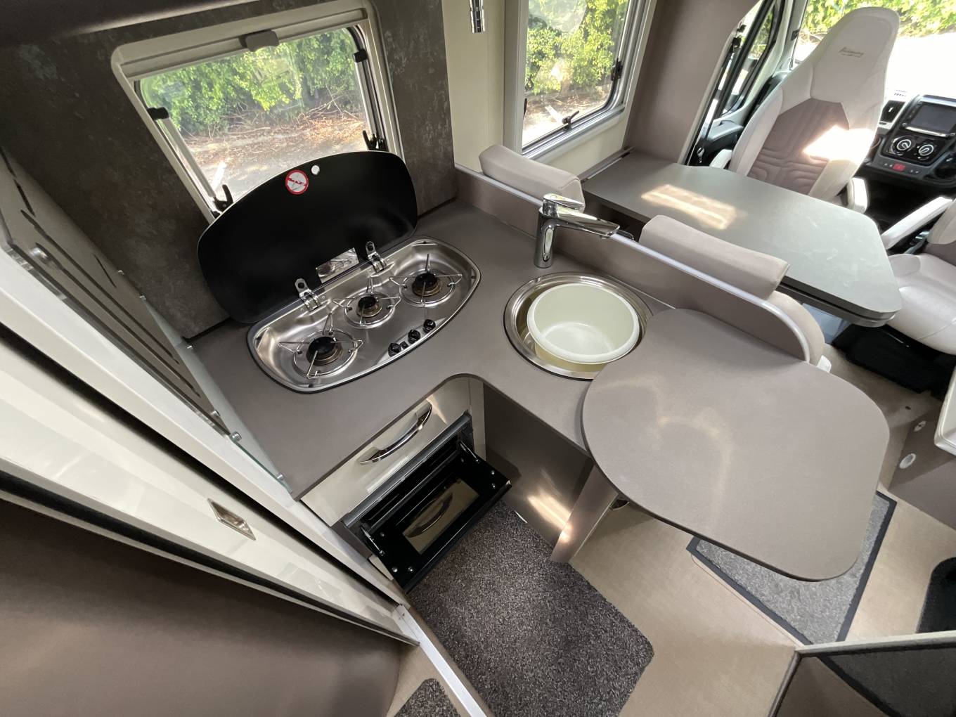 Built on the ever popular Fiat Ducato chassis and has a 2.3 litre engine with 6 speed manual gearbox. The motorhome has cab air conditioning and cruise control, and in-built reversing camera making this an absolute pleasure to drive.