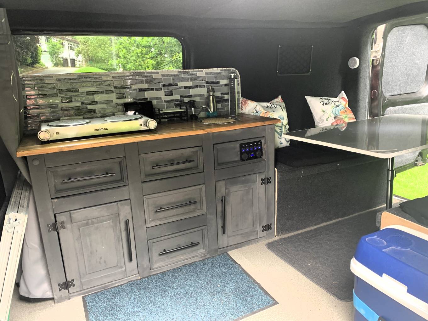 Please call 01423 609985. This is a new, self conversion of a 2011, Vauxhall Vivaro LWB Sportive panel van. It is a 2 berth, the rear lounge has 2 bench seats and this converts to a double bed. Its set up for 240V supply and has 12V too, that connects to the coolbox. There is a twin electric hob cooker, socket tower, water tap, spotlights. It has been owned by a business and carried light loads only. The cab has 3 seatbelts, 6 speed gearbox, bluetooth and air conditioning. A new clutch was fitted in Feb 2024 and comes with new MOT. Please call 01423 609985 for further details and to arrange an appointment to view in Leeds. Reference is 242638