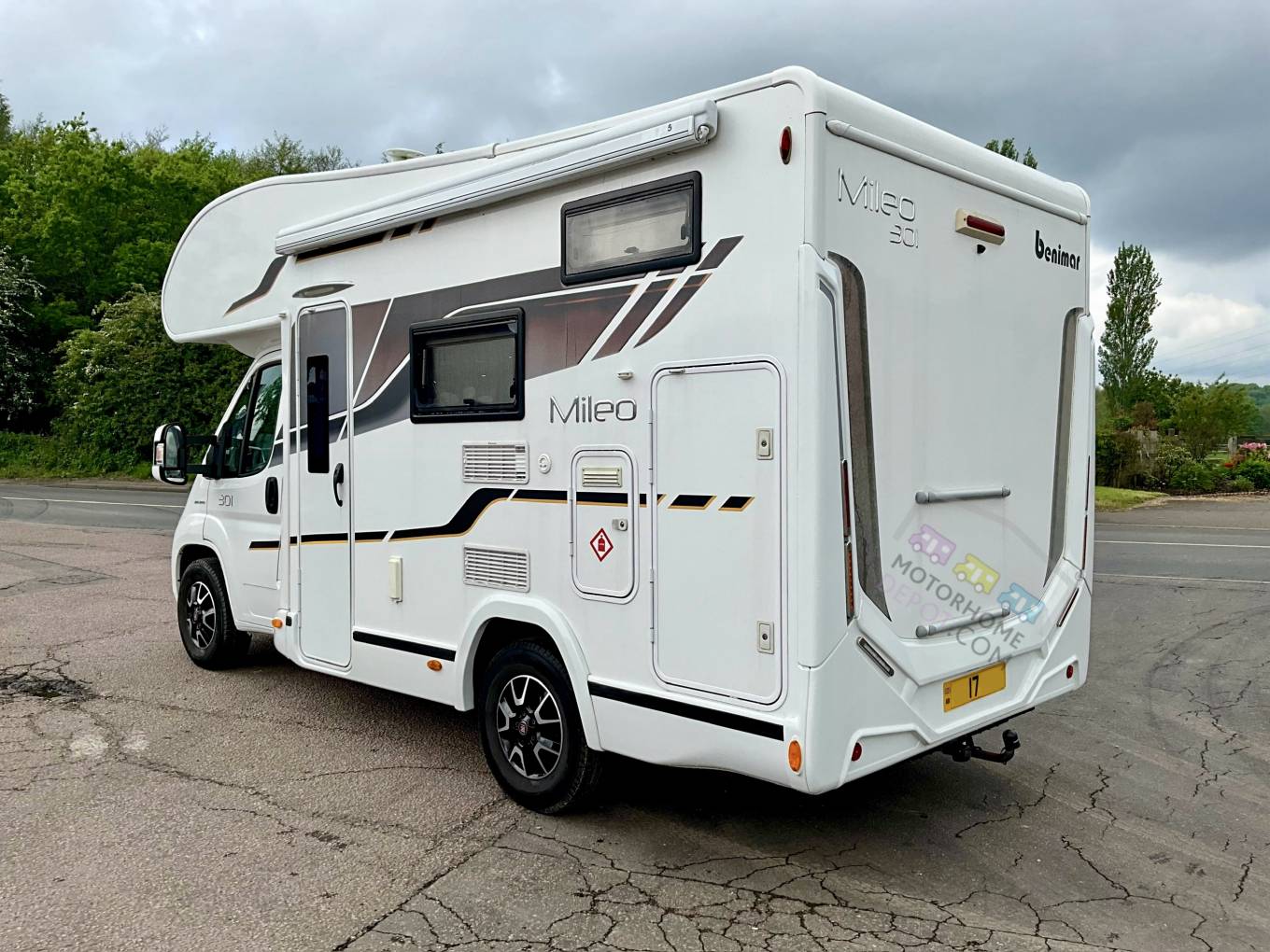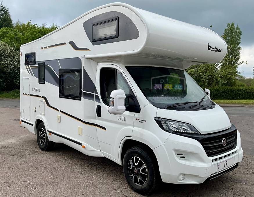 Fantastic specification compact 4 berth motorhome with garage, at just 5.95 metres long excluding tow bar the Benimar can go just about anywhere and can be driven on a standard car licence. This is a great vehicle for hobbyists and adventurers, having refillable gas bottles, solar panel, awning and bike rack, towbar, adjustable height garage with access both sides, a very versatile motorhome indeed.