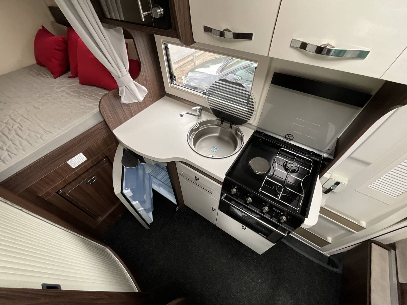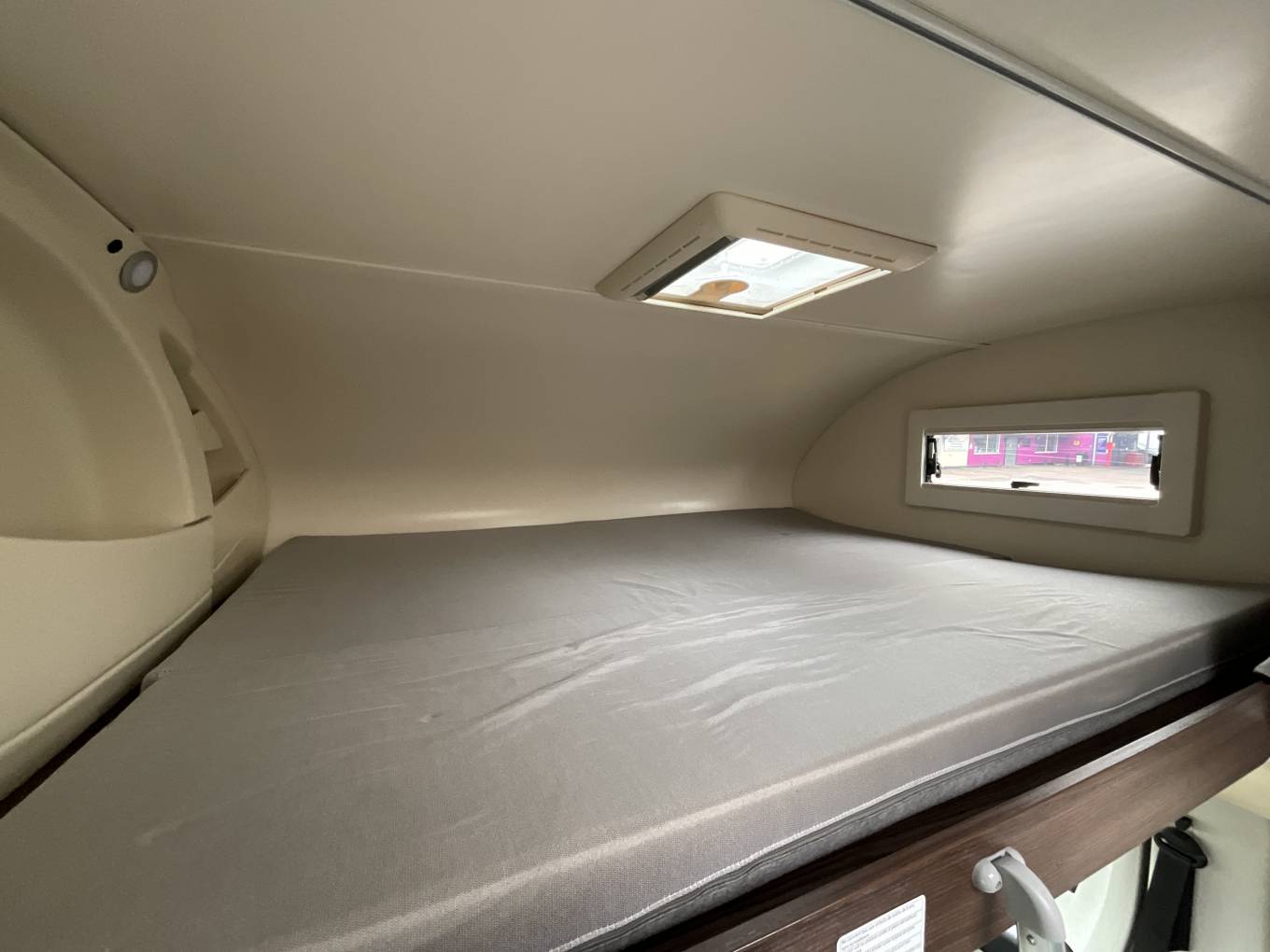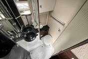 Inside, you will find no space wasted, with both cab seats swivelling into the dinette area around a dual size, multi position pedastal table, in front of a comprehensive kitchen with dual fuel hob, gas oven and grill, fridge and microwave. Opposite the kitchen is the washroom with solid screen shower, toilet and vanity sink, while at the rear is a transverse, height adjustable double bed over the garage, with integrated double step. To the front is a generous overcab bed with window, ventilation and lighting, USB point. Throughout the motorhome, there is a high standard of fixtures and fittings, with a modern styling and ambience.