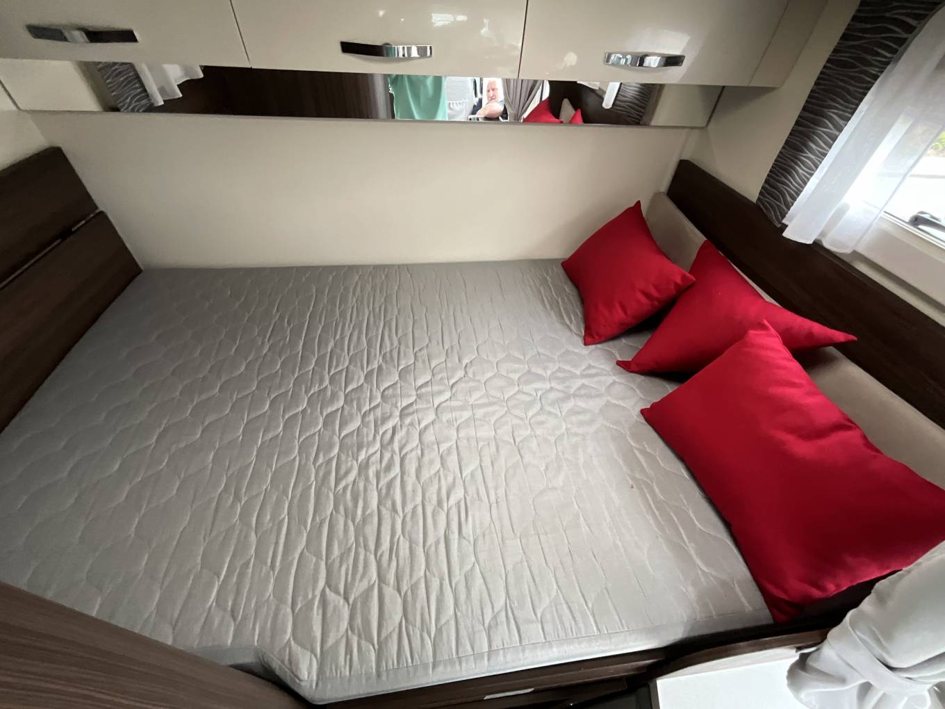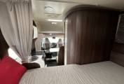 Up front the cab controls are light and include enhancements such as integrated blinds, cab air conditioning, cruise control, multimedia unit with TomTom satnav and reversing camera. 150bhp Fiat Ducato base with Manua Gearbox. Outside fitted equipment includes roll out sun canopy, solar panel, external shower, external bbq point, towbar, access to gas bottles and filling point. The heated rear garage has a maximum internal height of 1.25 metres with access both sides.
