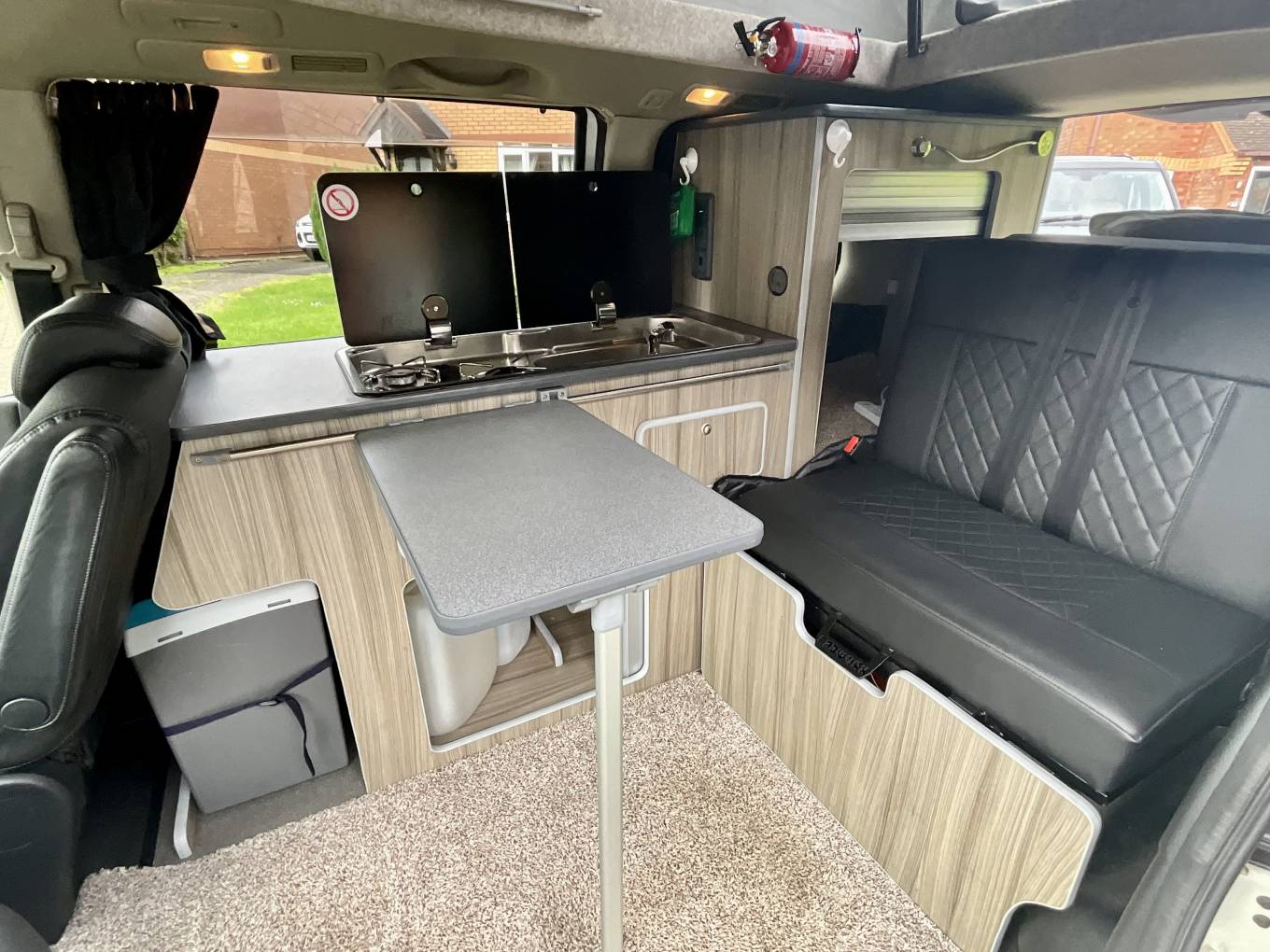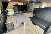 This model comes fully equipped with swivel seat, table for socialising and meal times, and a kitchen featuring gas hobs, sink with water pump and coolbo. The pop top increase the space and room to manoeuvre about the van in. A Thetford Porta potti will come with this campervan.