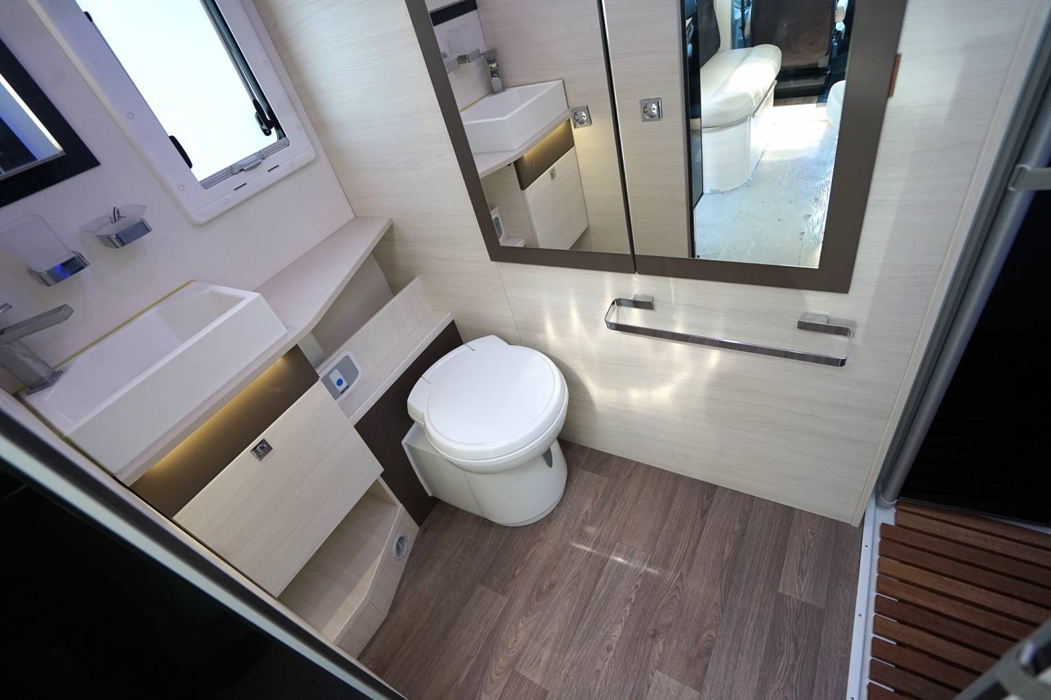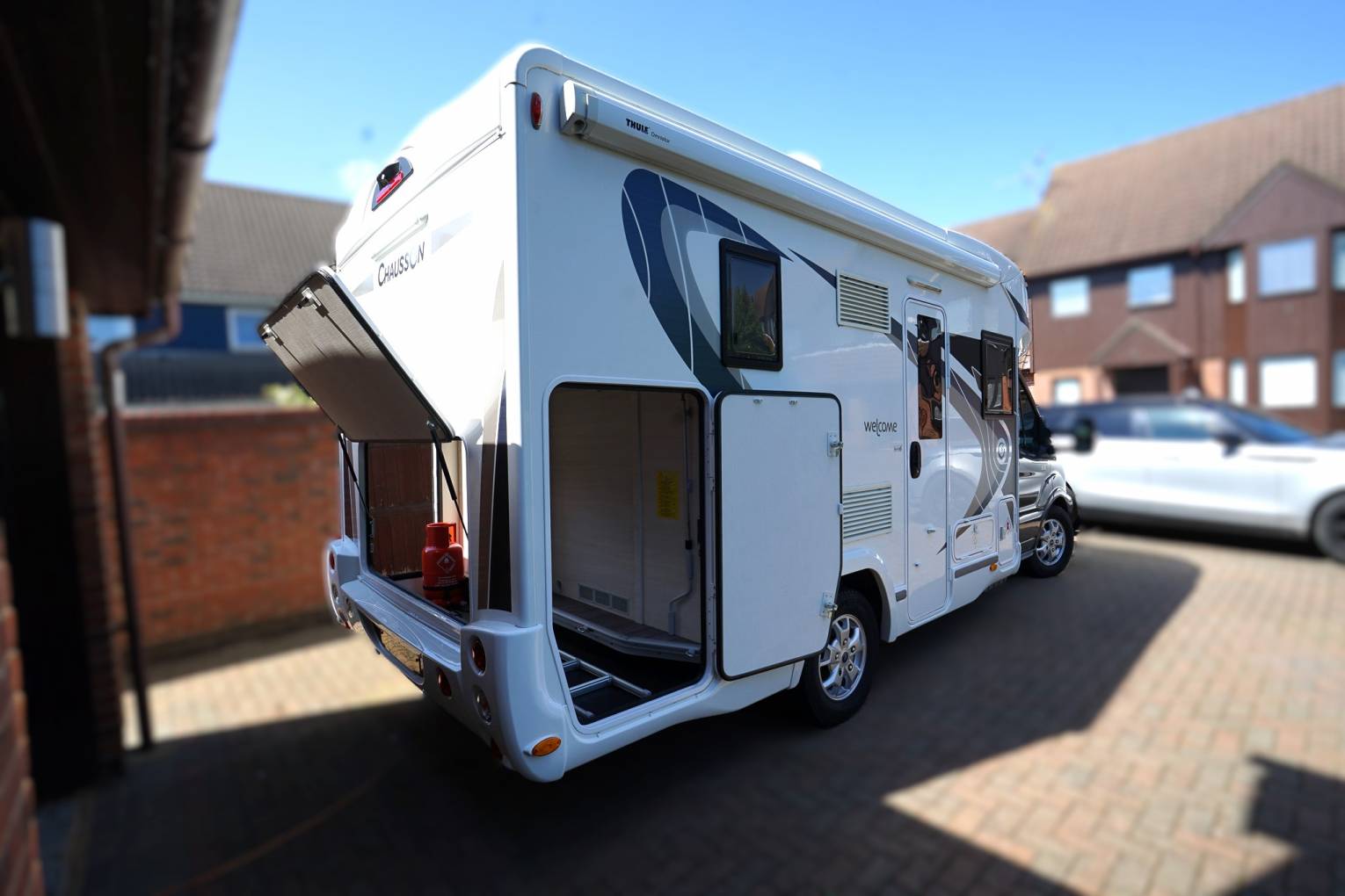 rear view camera. Under sofa storage locker with slide out BBQ Gas Locker. Full set of internal carpets which are still in the plastic covering from the factory.