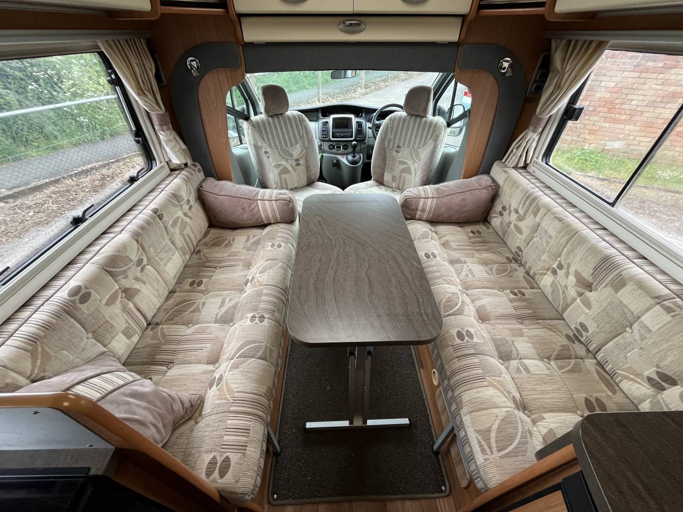 Moving to the lounge area with comfortable seating that then doubles up to make a well sized double bed or utilising extension cushions two very comfortable single beds . Both front seats swivel which is perfect for extra seating when you are entertaining.