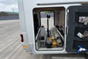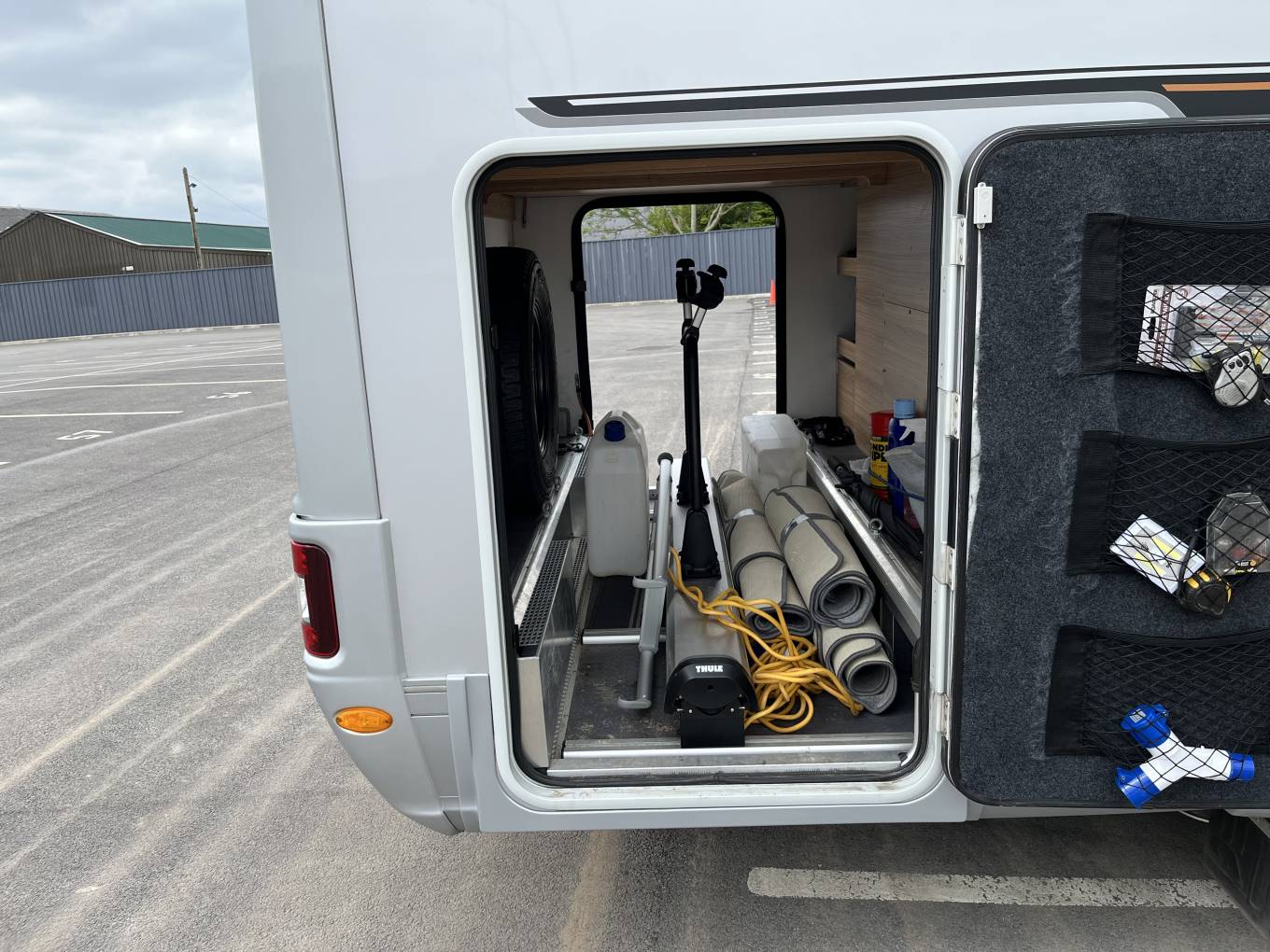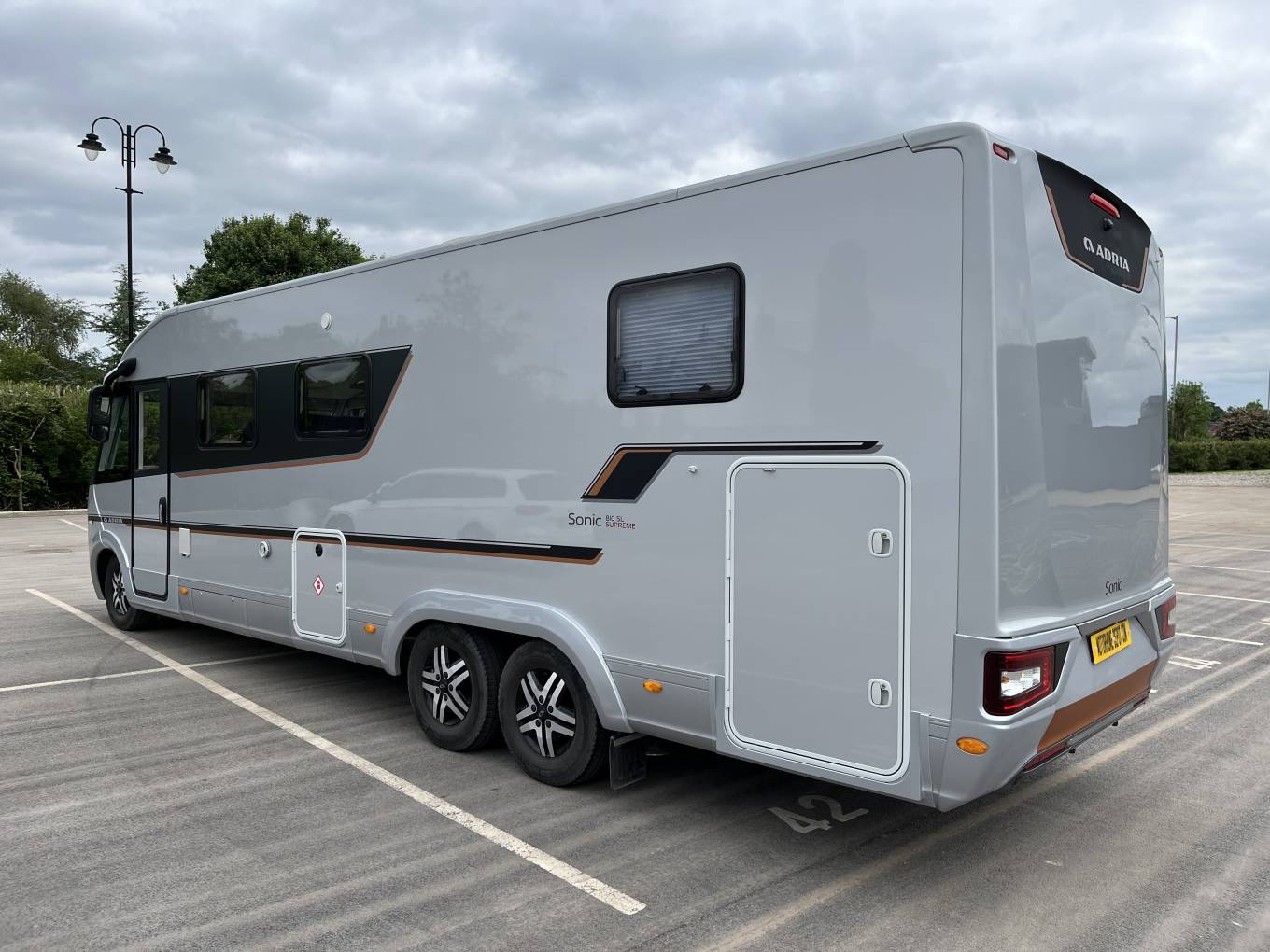 It comes with E and P Automatic Self Leveling System, Cat 5 Security Tracking, Cat 1 Alarm, Gas Low Refill System, Solar Panel, 200ah Lithium Battery, 3,000W Inverter, 5G Wi Fi, Alde Heating, Satellite System with 2 x TVs, Cab and Habitation Air Con, DAB Radio, Car Play, Rear Camera, Cruise Control, Outside Shower and BBQ Point.