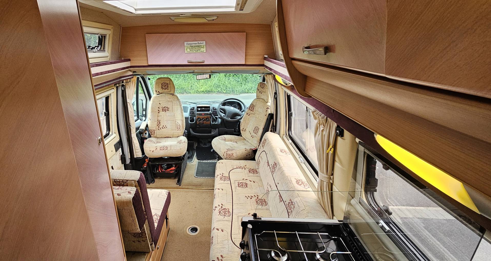 travelling belt, behind the driver’s seat you have a double lounge bench, which