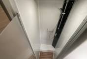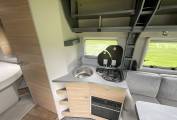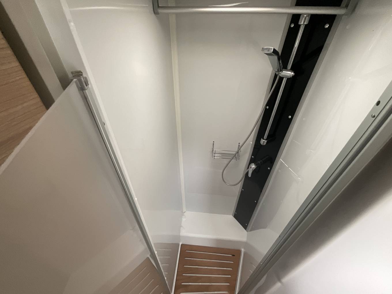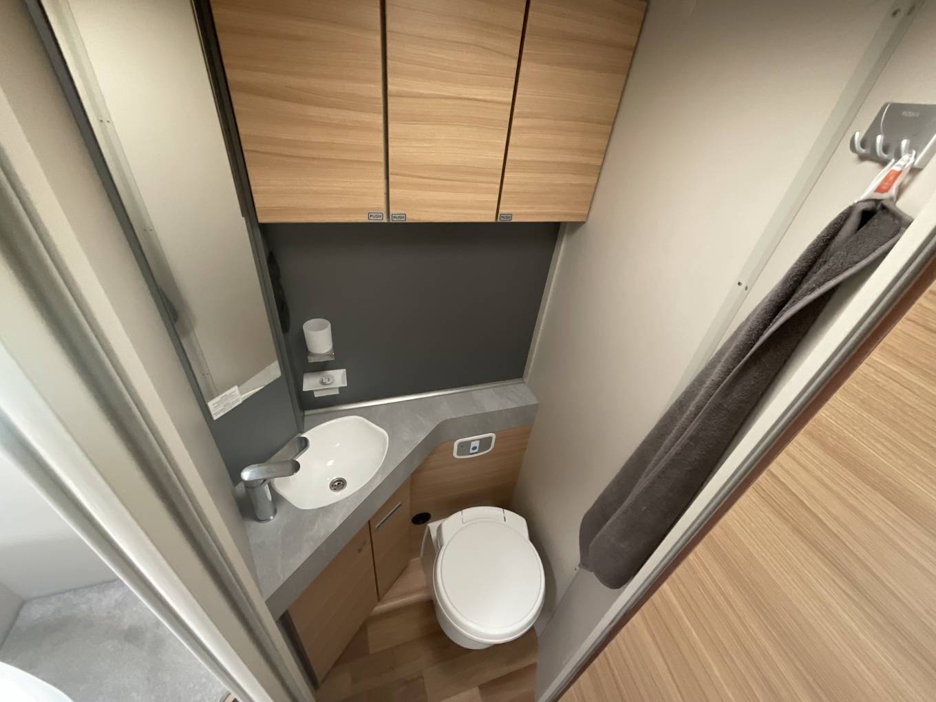 Progressing through the vehicle there is a nearside compartment for the toilet and hand basin and opposite, a separate shower. The toilet door can be used to screen off the toilet/shower with the rear bed area.