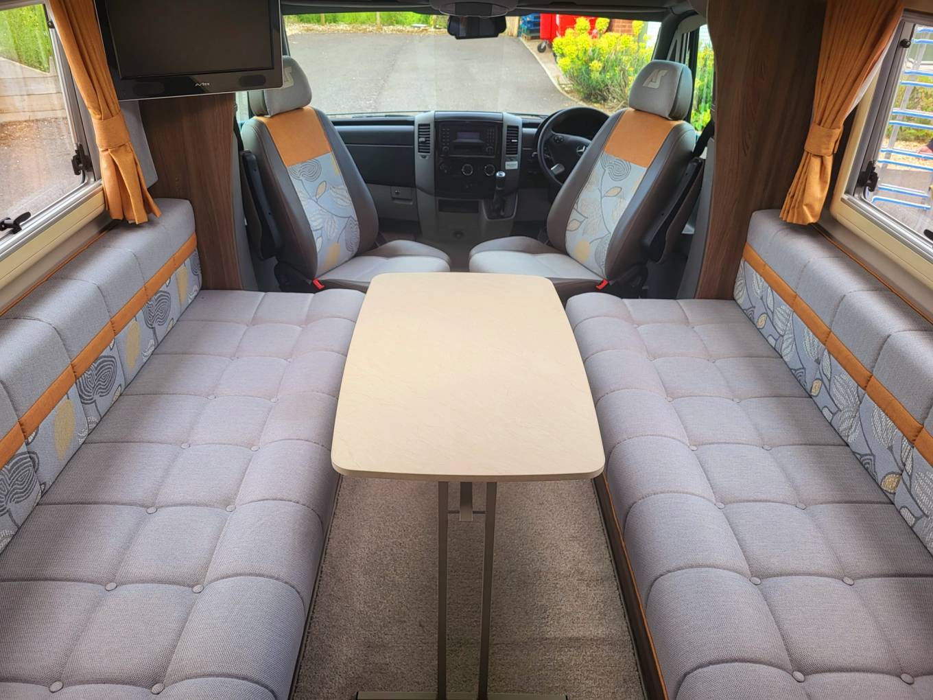 There is plenty of room for a couple who enjoy luxury touring in style. The seating can be easily transformed into a large double or 2 x single beds. Both cab seats turn to face the rear lounge to provide adequate space for entertaining. There is an Avtex TV