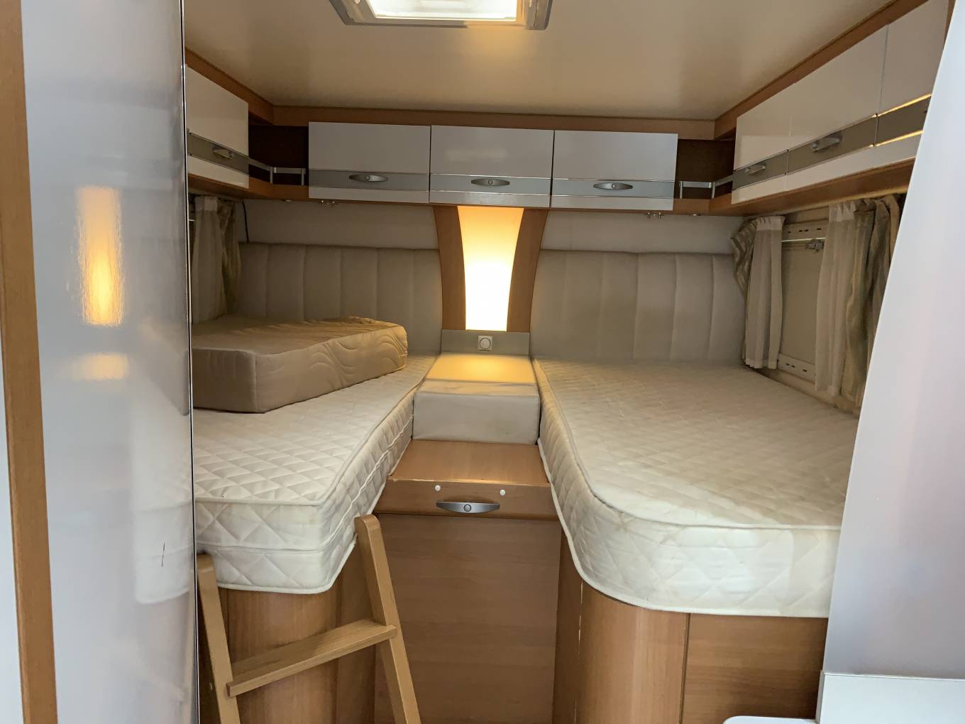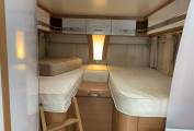 A no nonsense well designed spacious 4 berth motorhome, with 4 belts, featuring fixed singles or king size double over full sized rear garage, cable of carrying a motor scooter.