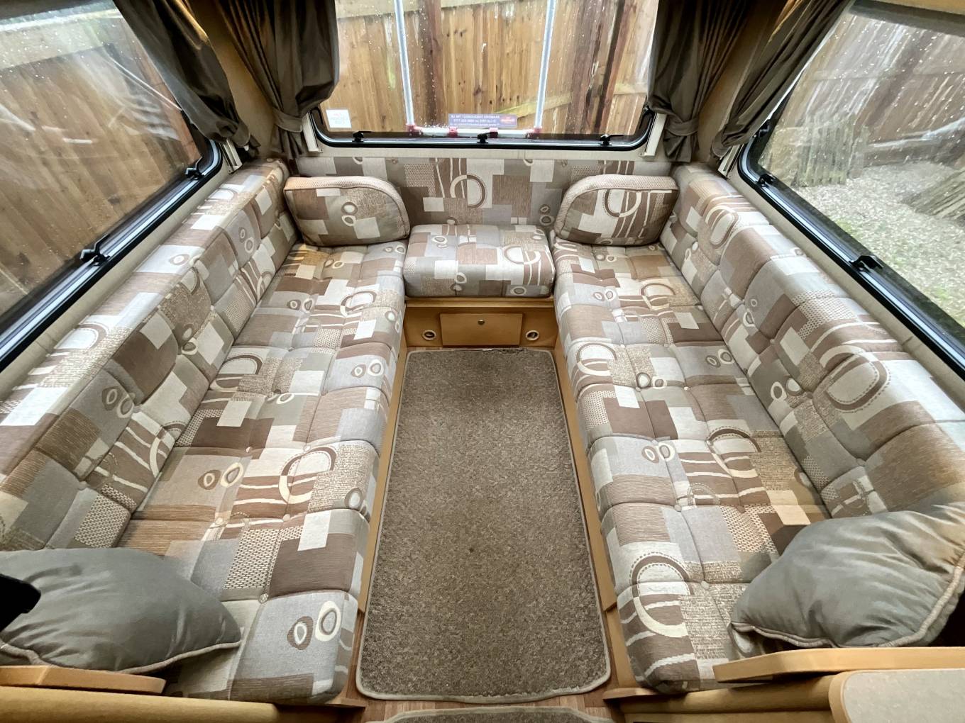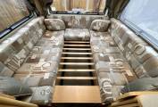 The Elddis Autoquest 140 features the ever popular rear lounge layout, complete with large windows and skylight to maximise natural light. At the rear of the motorhome, you could comfortably seat six, and a free standing table completes the area for socialising and mealtimes. At night, the rear can be quickly made up into a double bed measuring 1.8 metres by 2.05 metres.