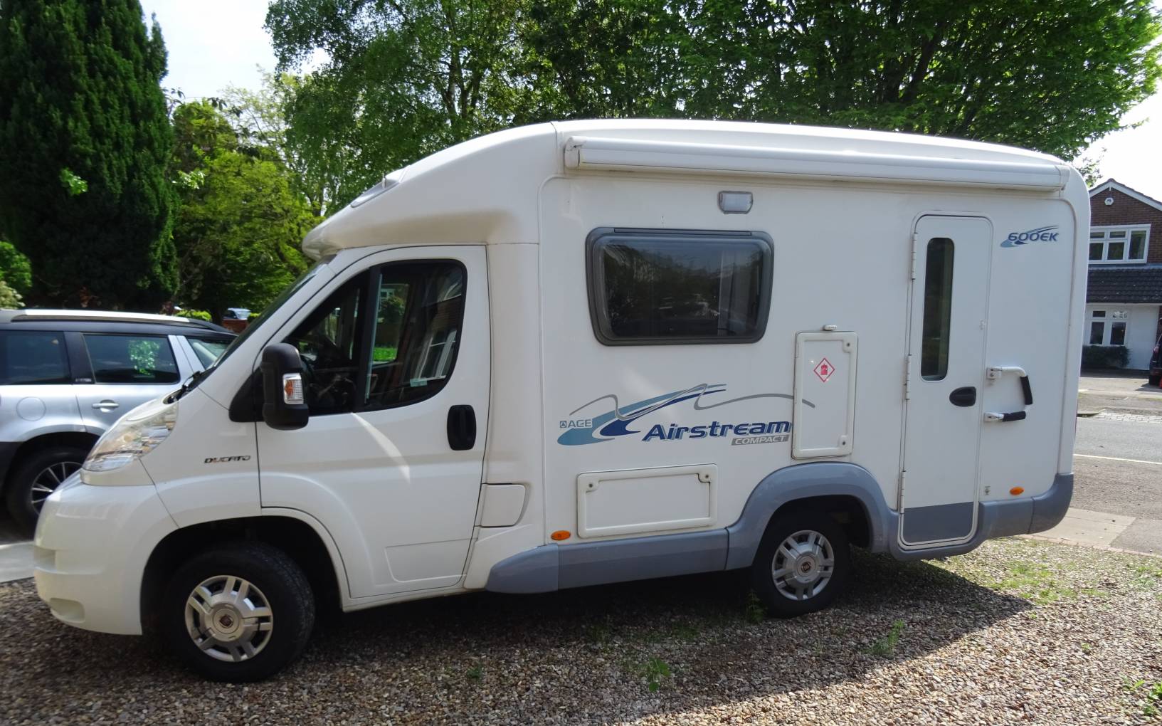 2008 2 Berth Compact Ace Airstream 600EK. Overall condition very good. Mileage only 33747 - Full Service History - MOT till 9 April 2025 - Last Hab Check 21 May 2024. This Ace Airstream is built on the Fiat Ducato 2.2 Multi-jet at 100 Bhp and a 5 speed manual gear box. It has 2 belted seats - Length 6 metres - Height 2.9 metres - Width 2.35 metres - Spare Wheel - 2 Sets of Keys - MTPLM 3500. This motorhome is near Dunstable.
