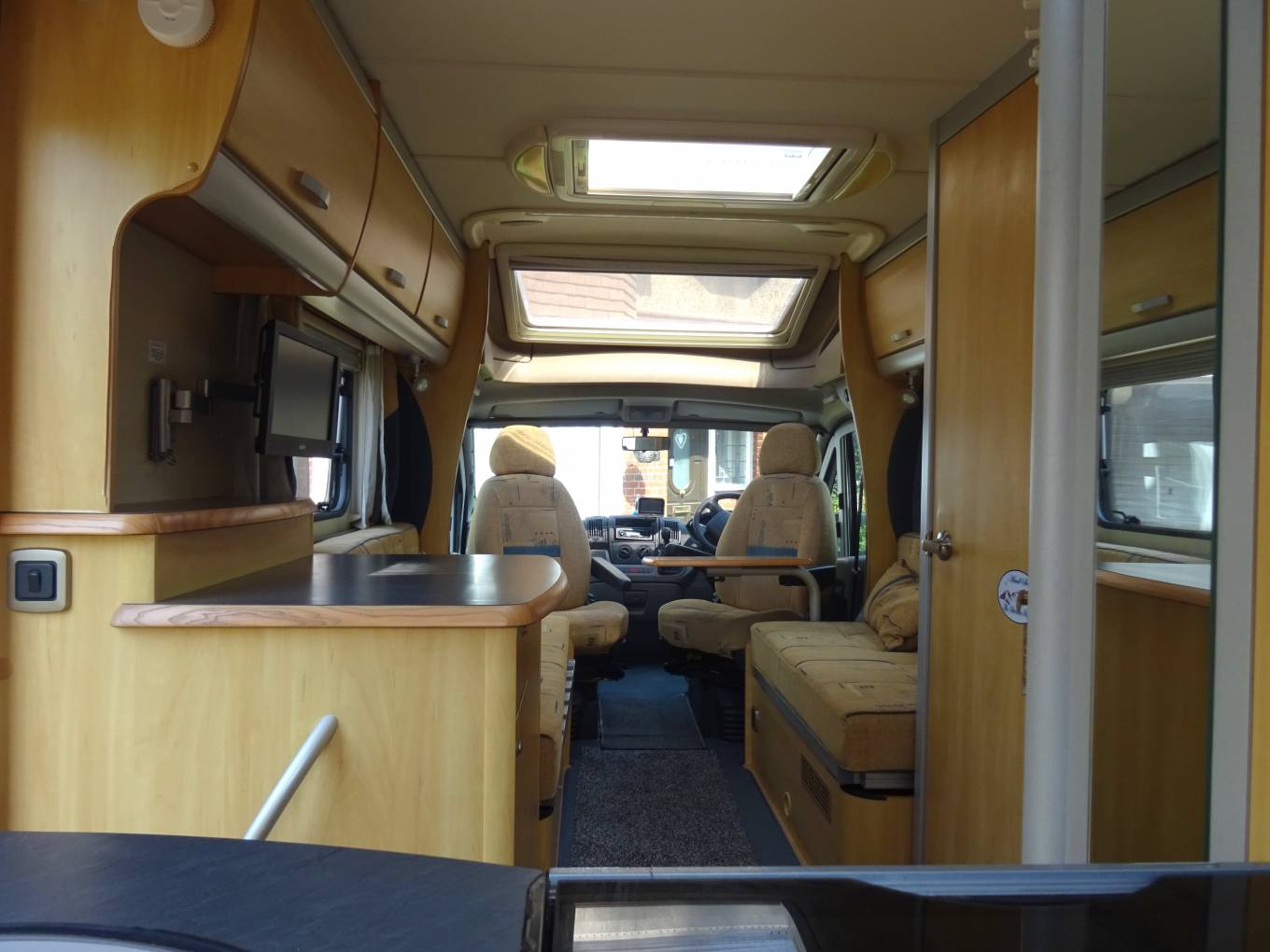 Features Motorhome: Very good condition throughout, Truma Heating and Hot Water (Gas and Electric), Blinds, Fly Screens and Curtains, Carpets, New Leisure Battery, Storage Lockers, Under Seat Storage, TV, Bike Rack, Tow Bar, Wind-Out Canopy and Fiamma Hab Door Lock.