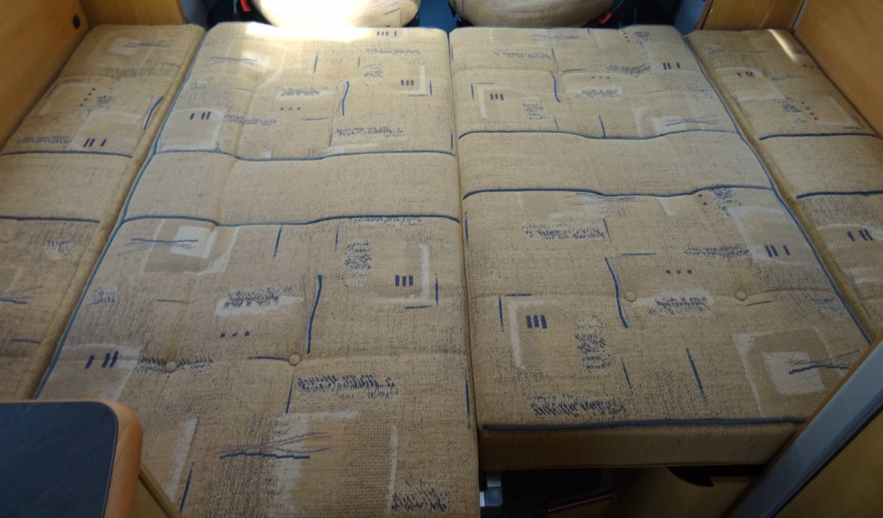 Both cab seats swivel to enhance the parallel lounge/dining area and the dining table can be neatly stored away at the rear. There is a 2nd adjustable post table for drinks and snacks. This area easily converts into a double bed (6ft 10" x 4ft). Alternatively with the passenger seats rotated 180 degrees they extend the parallel seats to make 2 single beds.
