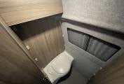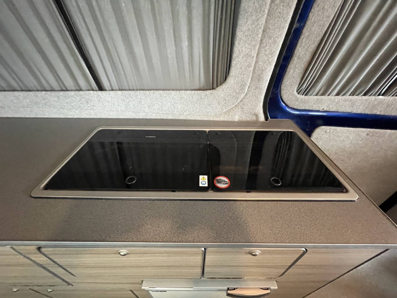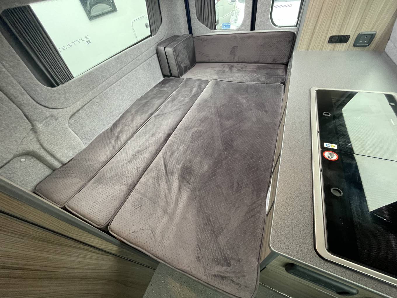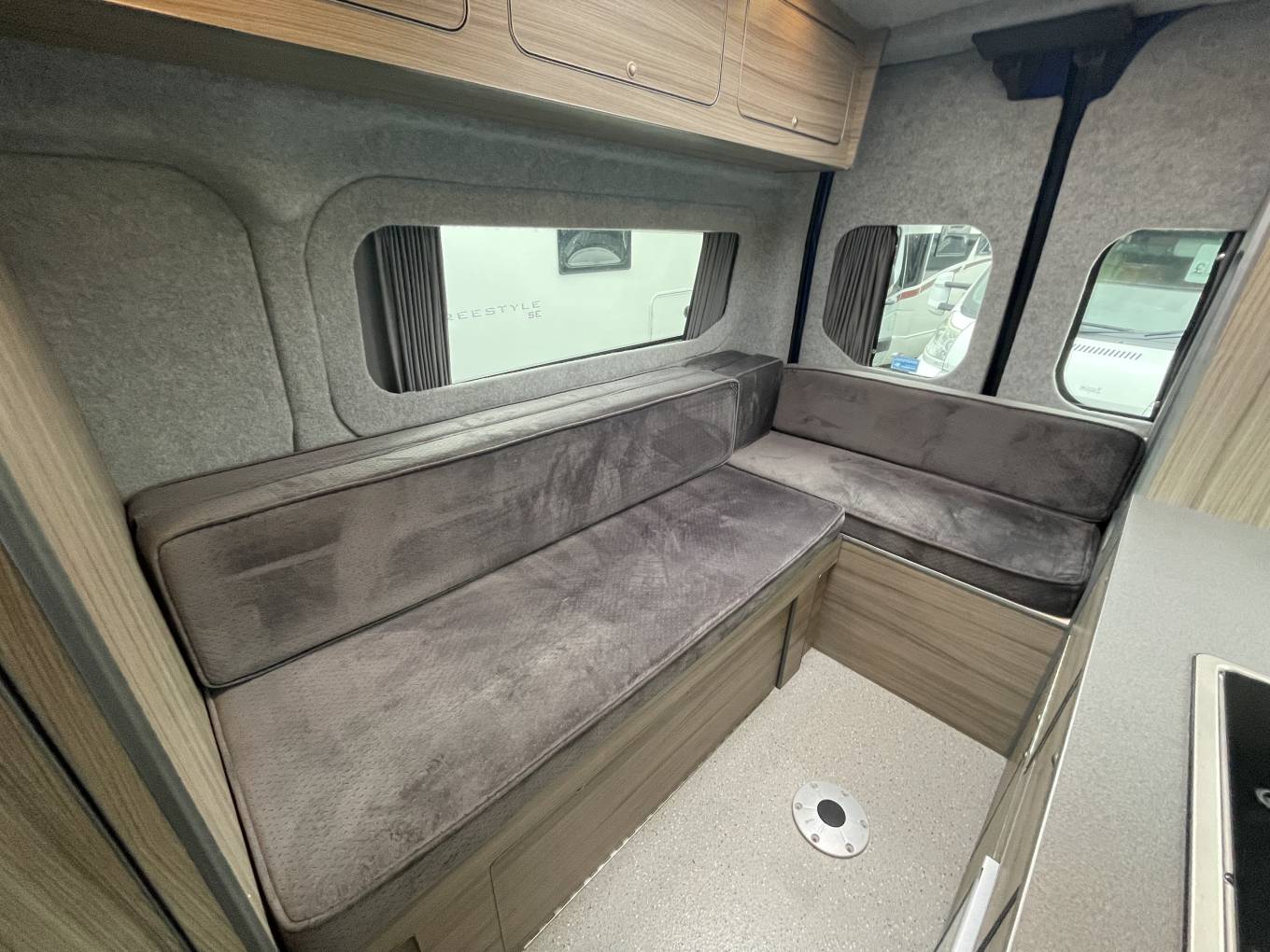 Packed into the smart little conversion you have a Hob, fridge, Running water, heating and a toilet situated in its own little privacy room. The L shaped seating neatly pulls out to make large double bed for night time.