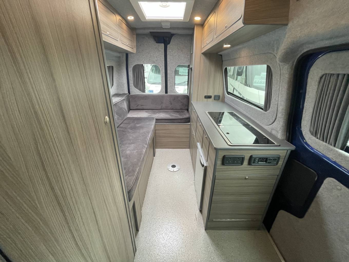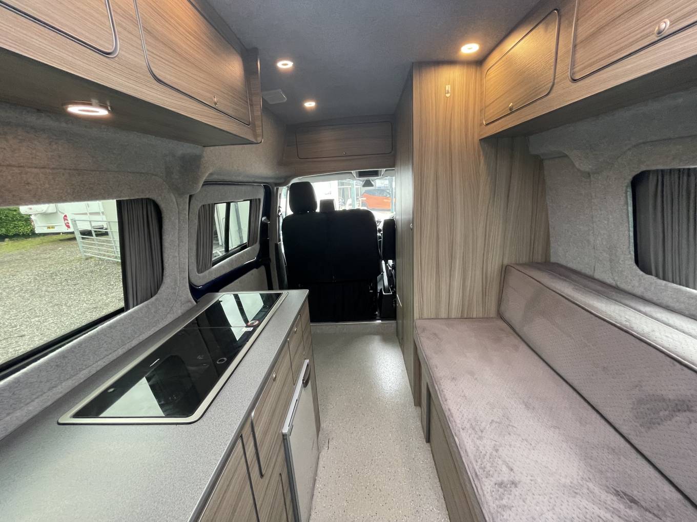 Motorhome Depot Farnsfield present this lovely compact Ford Camper van. A professional conversion giving you a fantastic sense of space in convenient compact Van. This Camper has 3 travelling seats in the front which, two of them, can be spun around to accompany the living area.