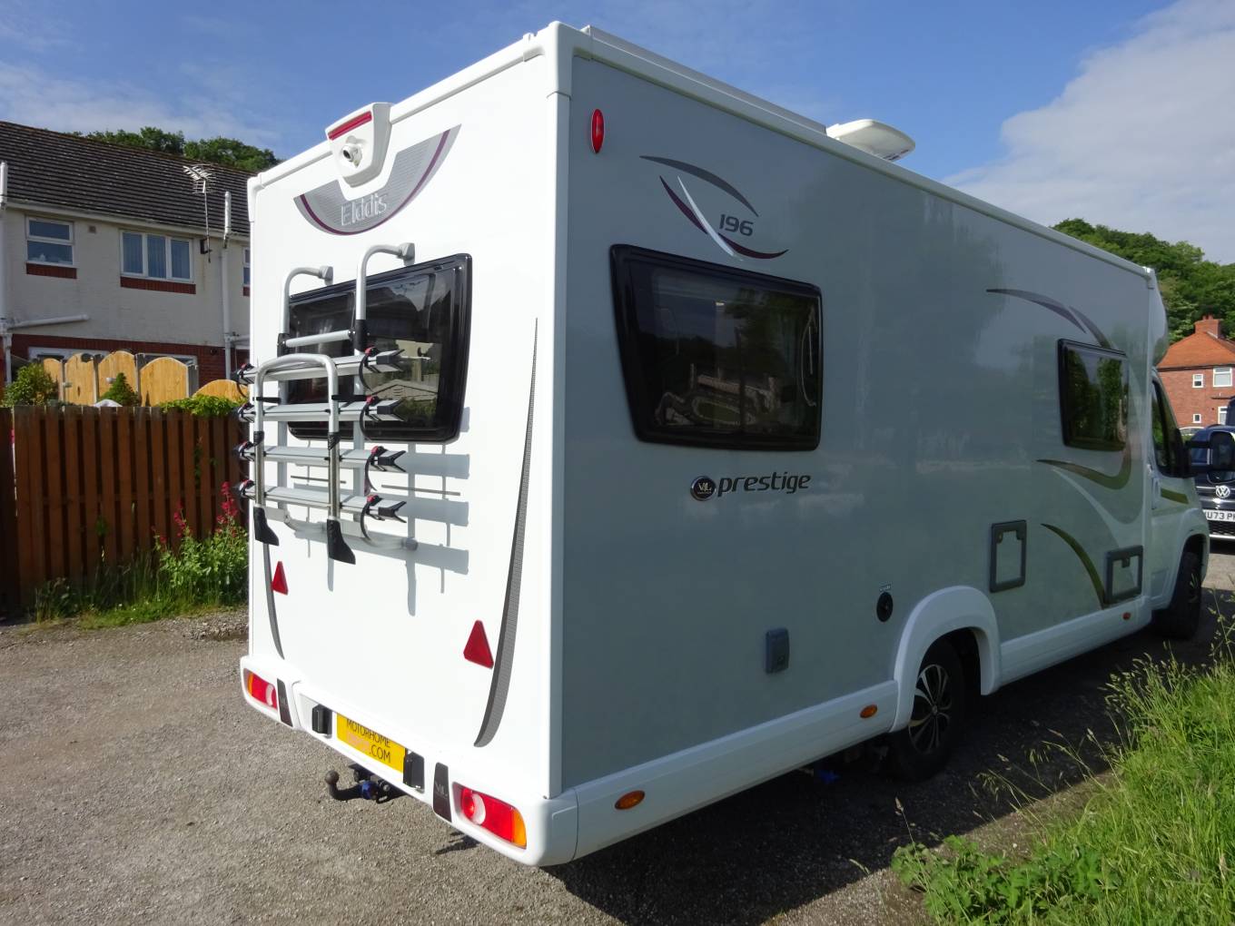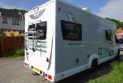 Alloy wheels add to the stylish exterior colour scheme. At the rear a tow bar is fitted along with a bike rack for up to 4 bikes. Additional LED lighting is fitted under the awning.